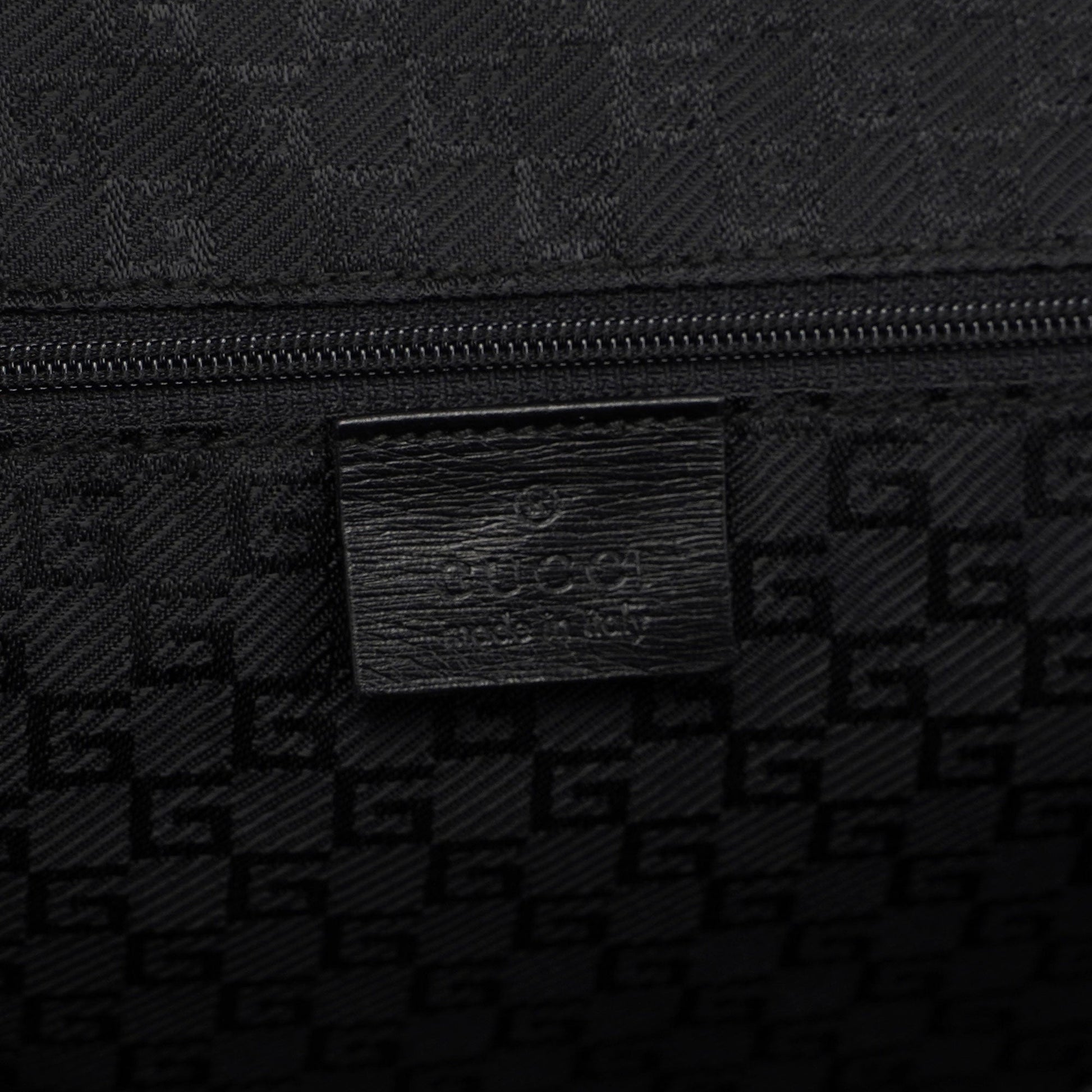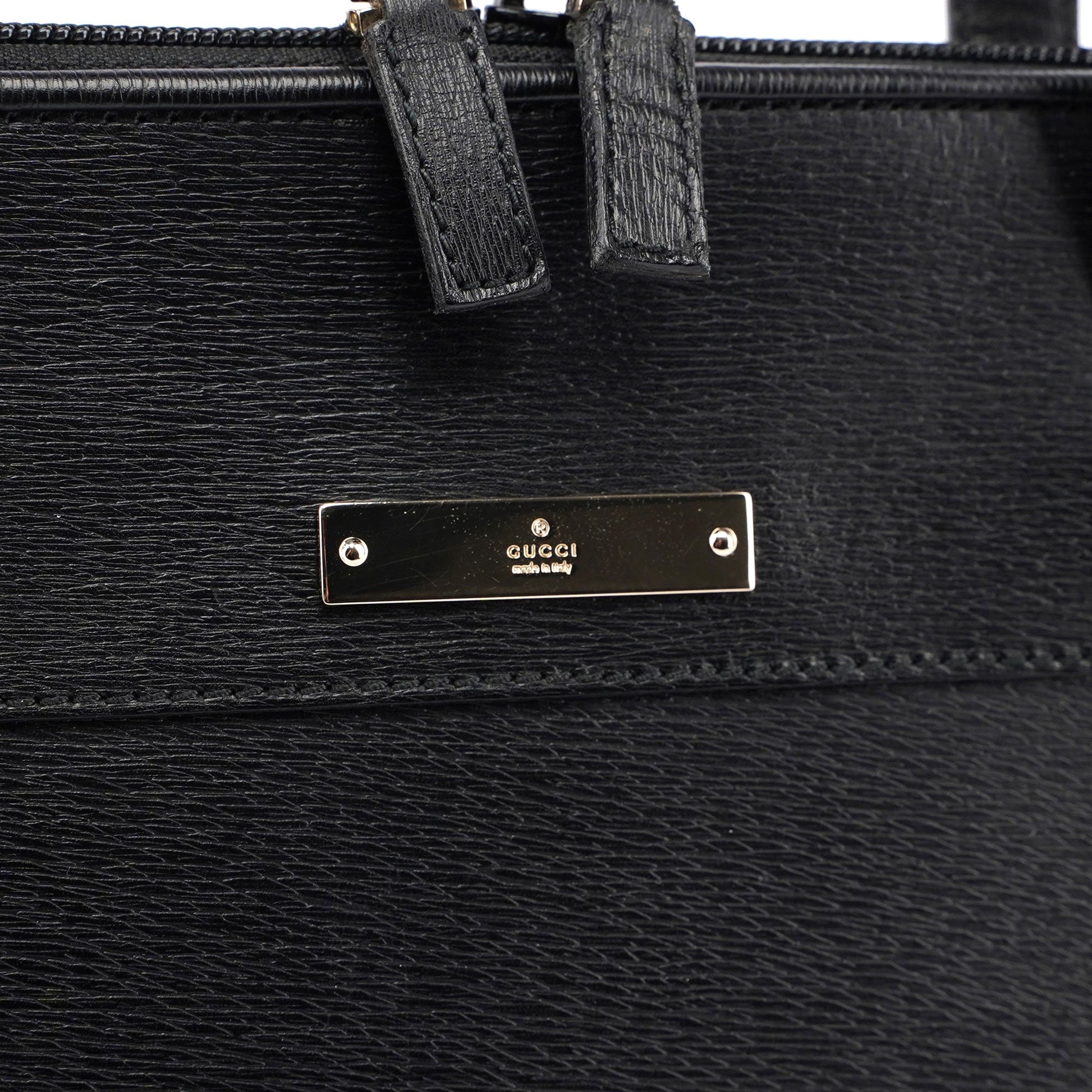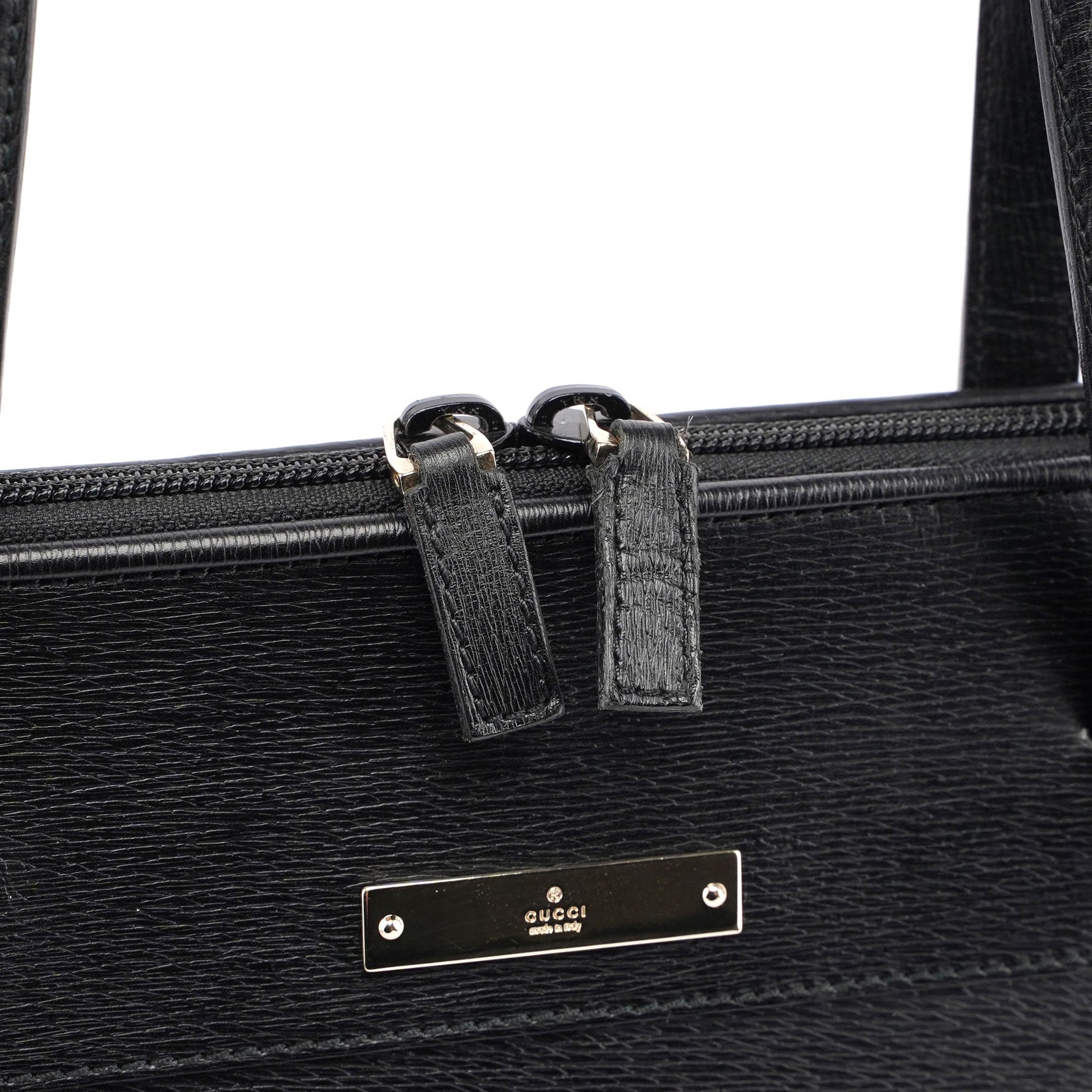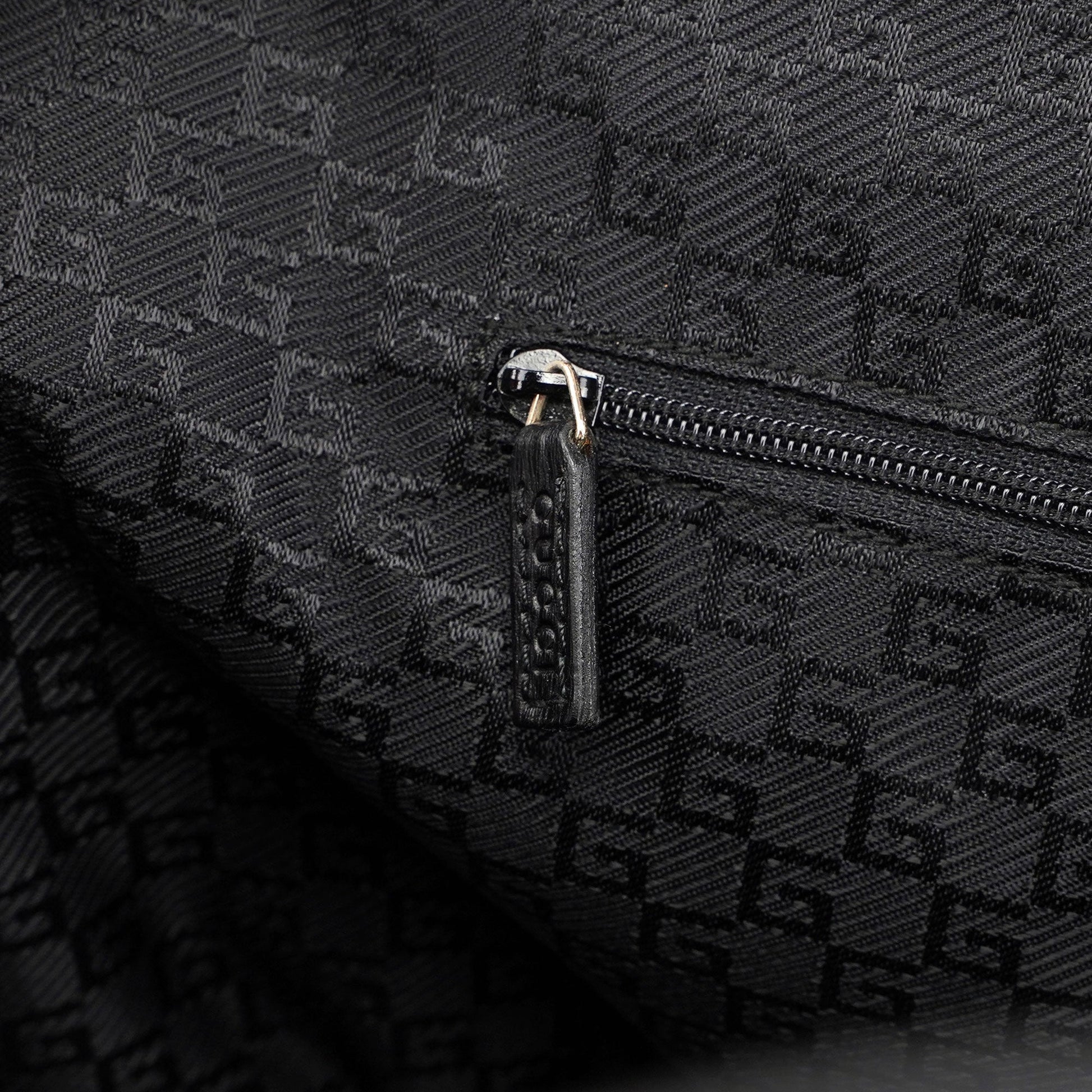 Designed by Tom Ford in the late 1990s, this Gucci tote bag exudes sophistication. Made from black leather with gold-tone hardware, it features a convenient zipper closure. Inside, the satin-lined interior includes a zipper pocket for organization.