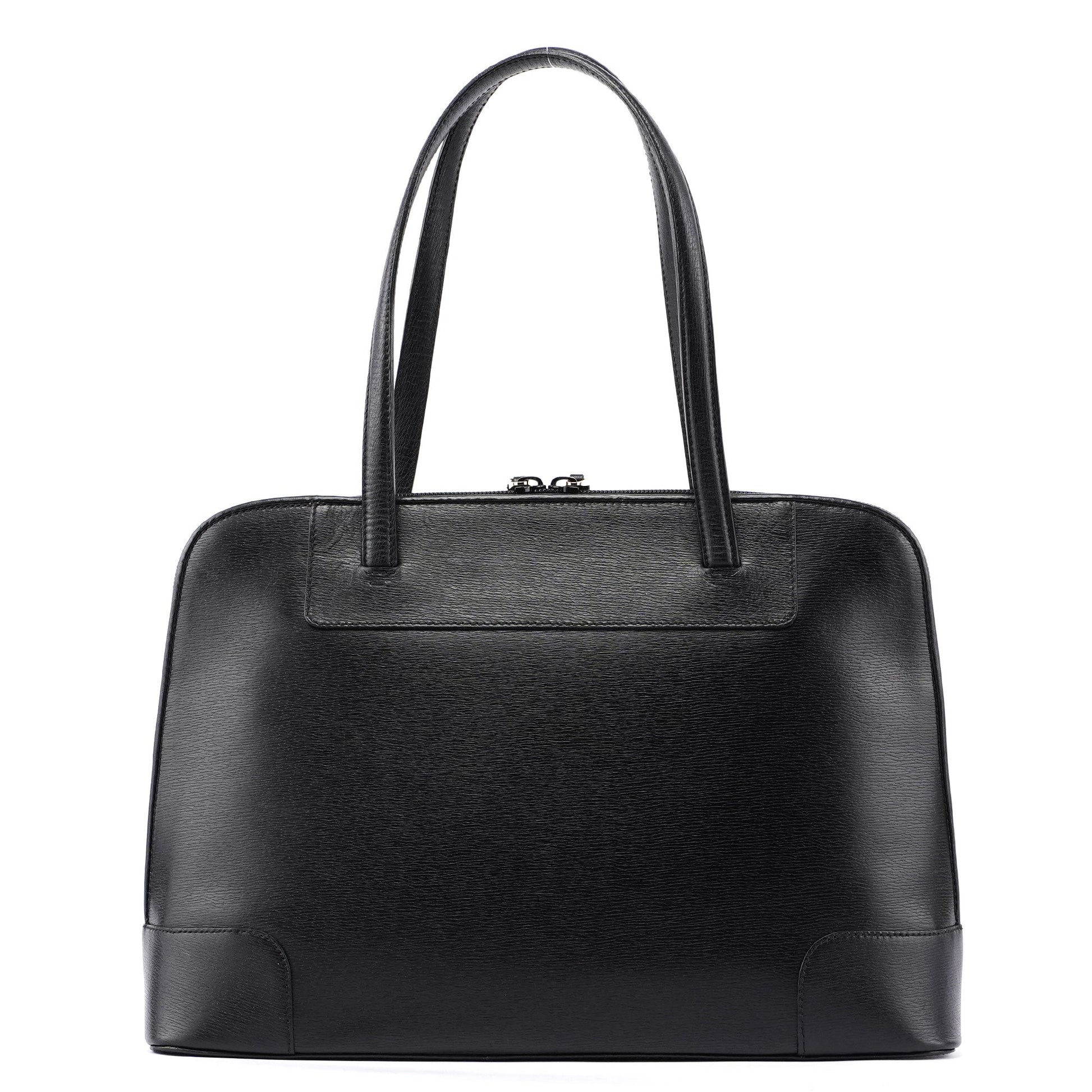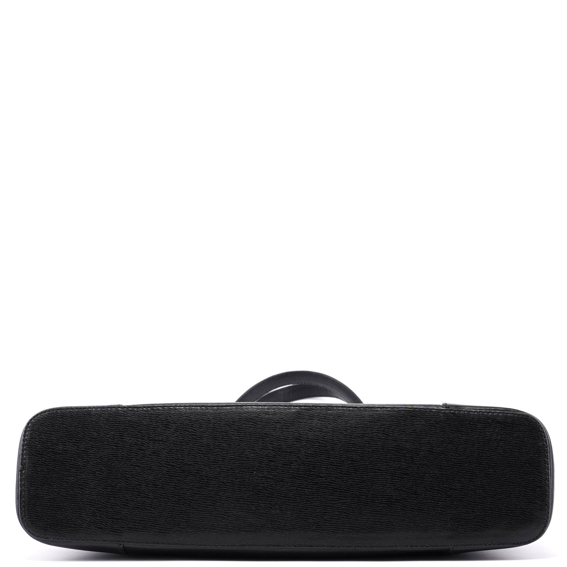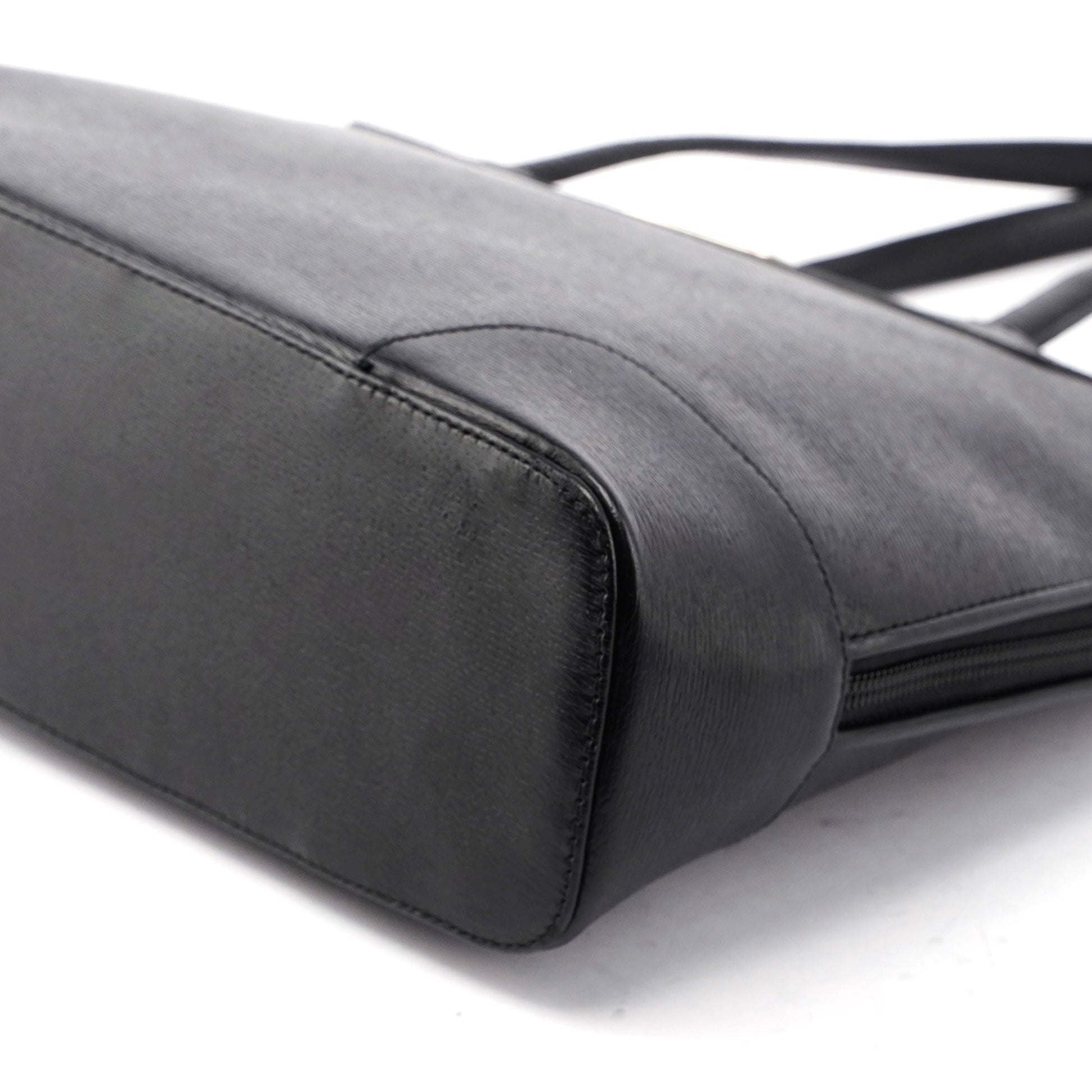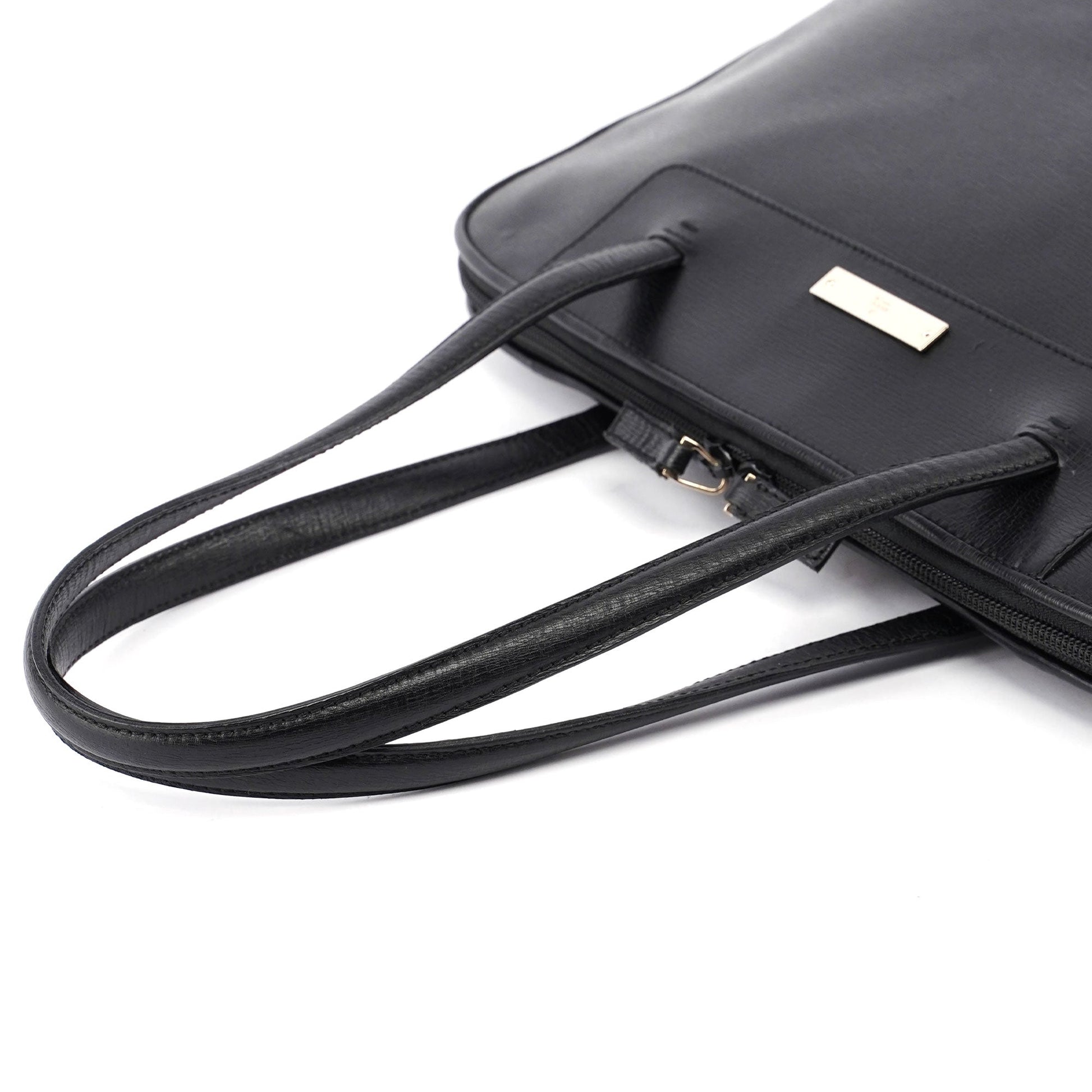 Designed by Tom Ford in the late 1990s, this Gucci tote bag exudes sophistication. Made from black leather with gold-tone hardware, it features a convenient zipper closure. Inside, the satin-lined interior includes a zipper pocket for organization.