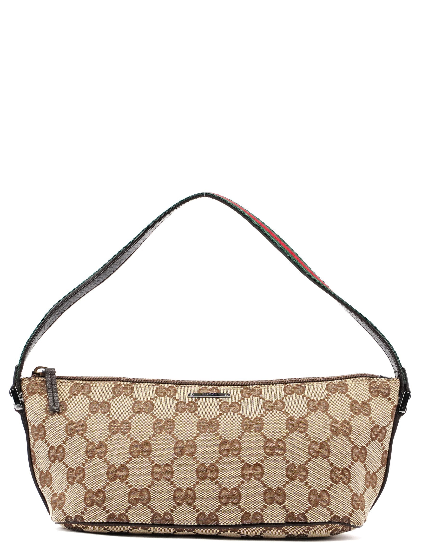 Explore timeless elegance with the Gucci GG Boat Pochette by Tom Ford, circa late 1990s. This exquisite piece combines beige GG canvas with brown leather trim and silver-tone hardware. Its secure zip closure and satin-lined interior offer luxury and practicality, while the subtle Gucci plaque adds a touch of heritage. A perfect blend of vintage charm and sophistication.