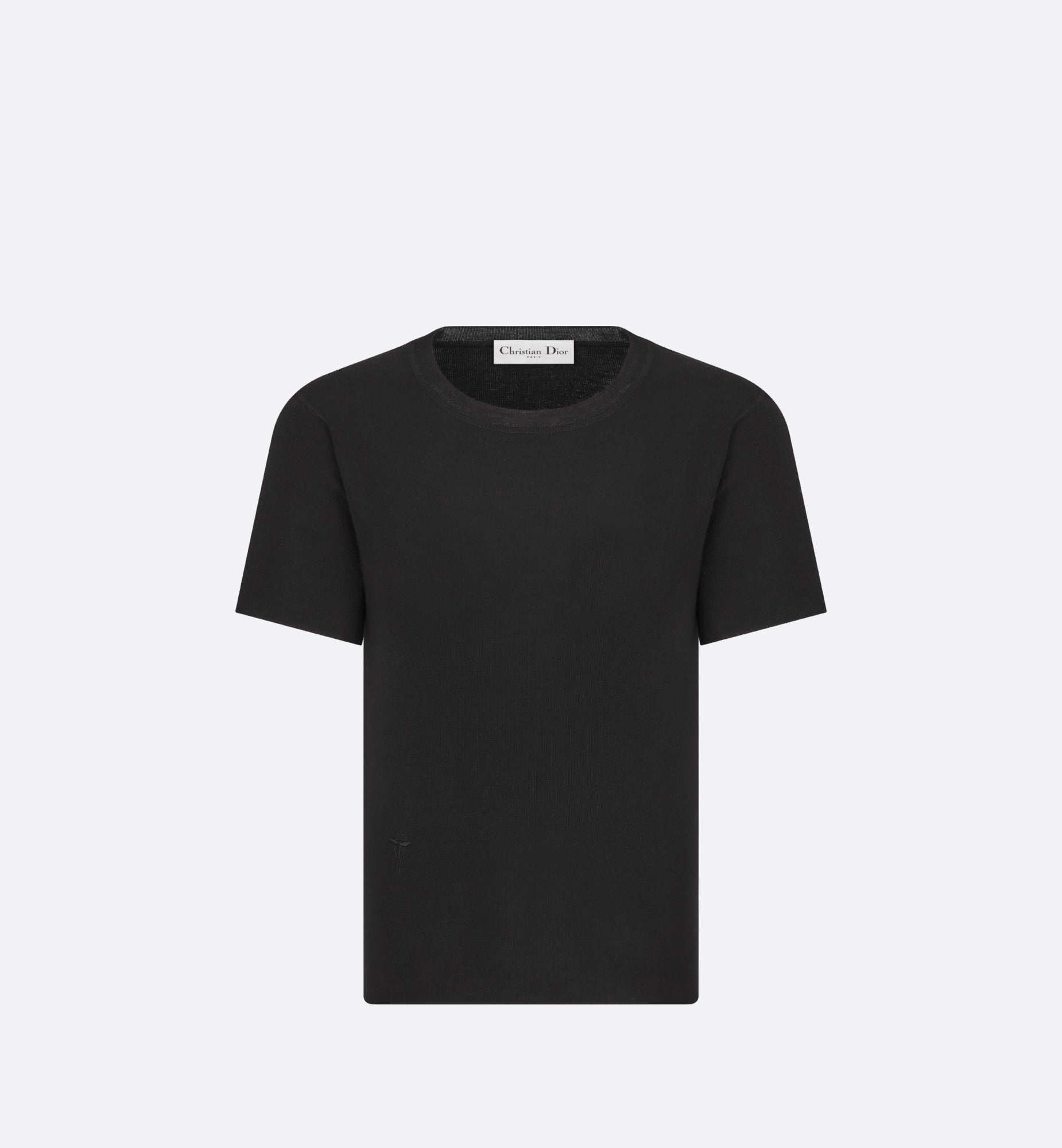New for the Cruise 2024 collection, the sweater is a timeless creation that elegantly reimagines the House codes. Crafted in black lightweight cashmere and silk knit, it is embellished with a round neck and an embroidered bee emblem. The short-sleeved sweater will elevate any of the season's looks.
