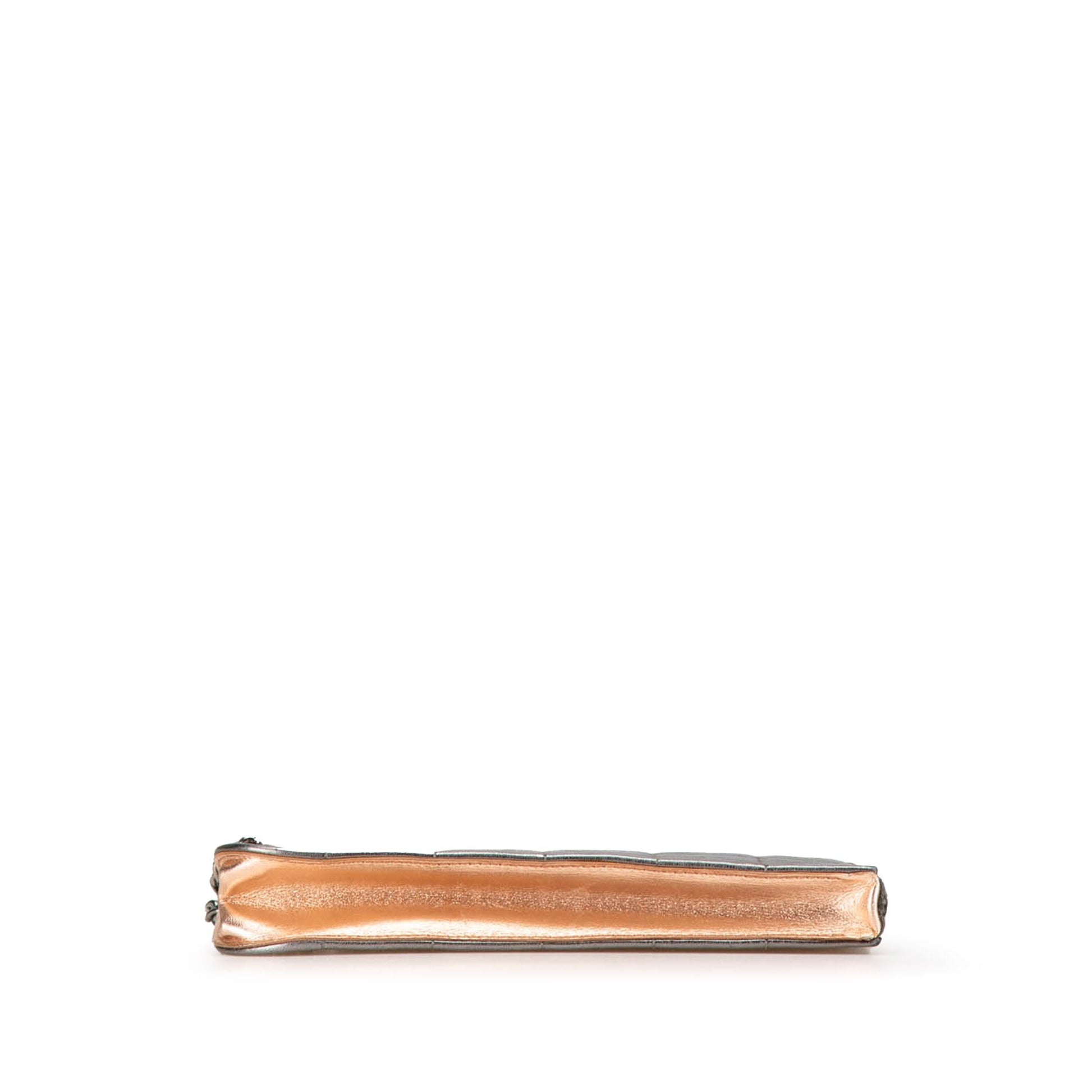 Silver Chanel Chocolate Bar Lambskin Handcuff Wristlet Clutch Bag