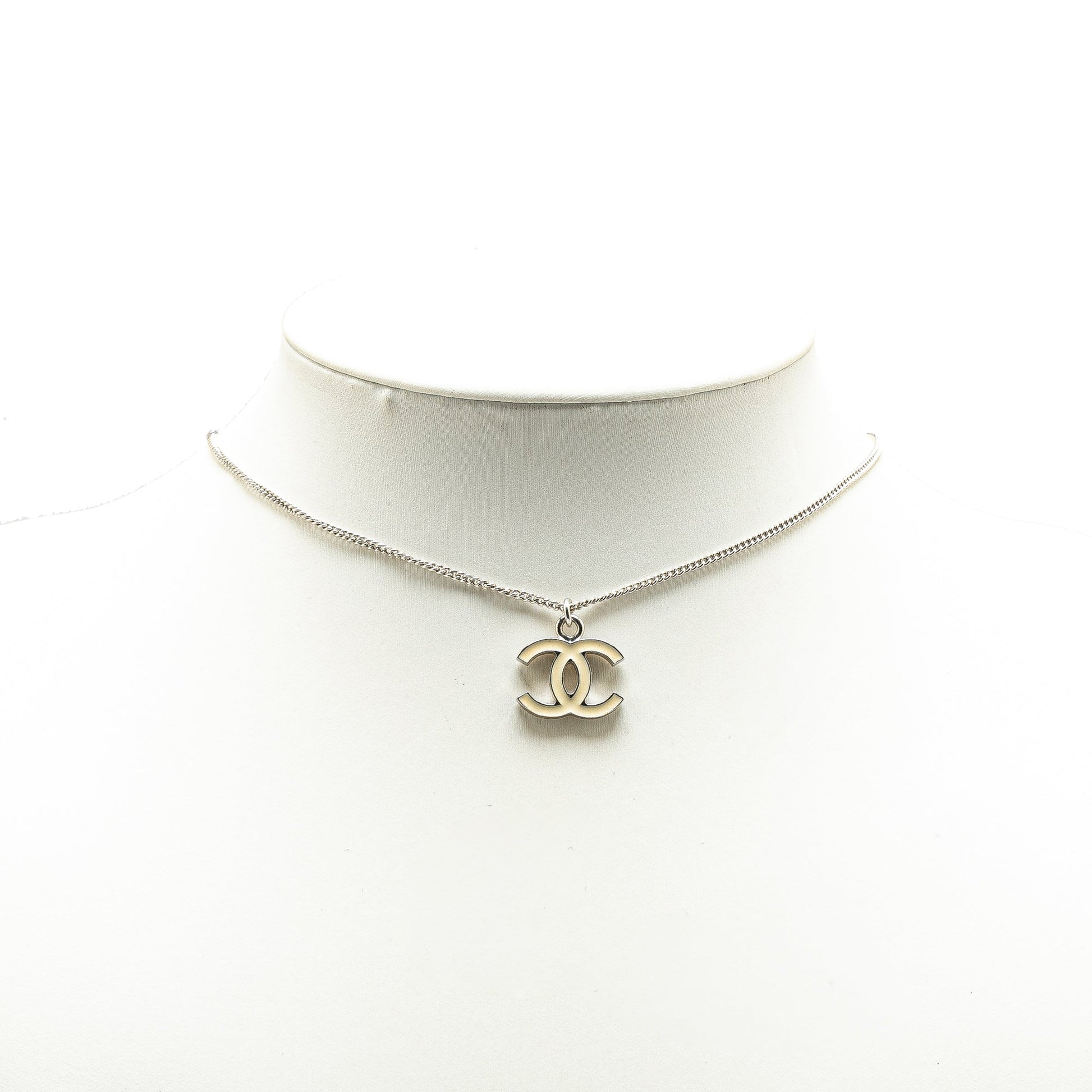 Silver Chanel Silver CC Enamel Pendant Necklace