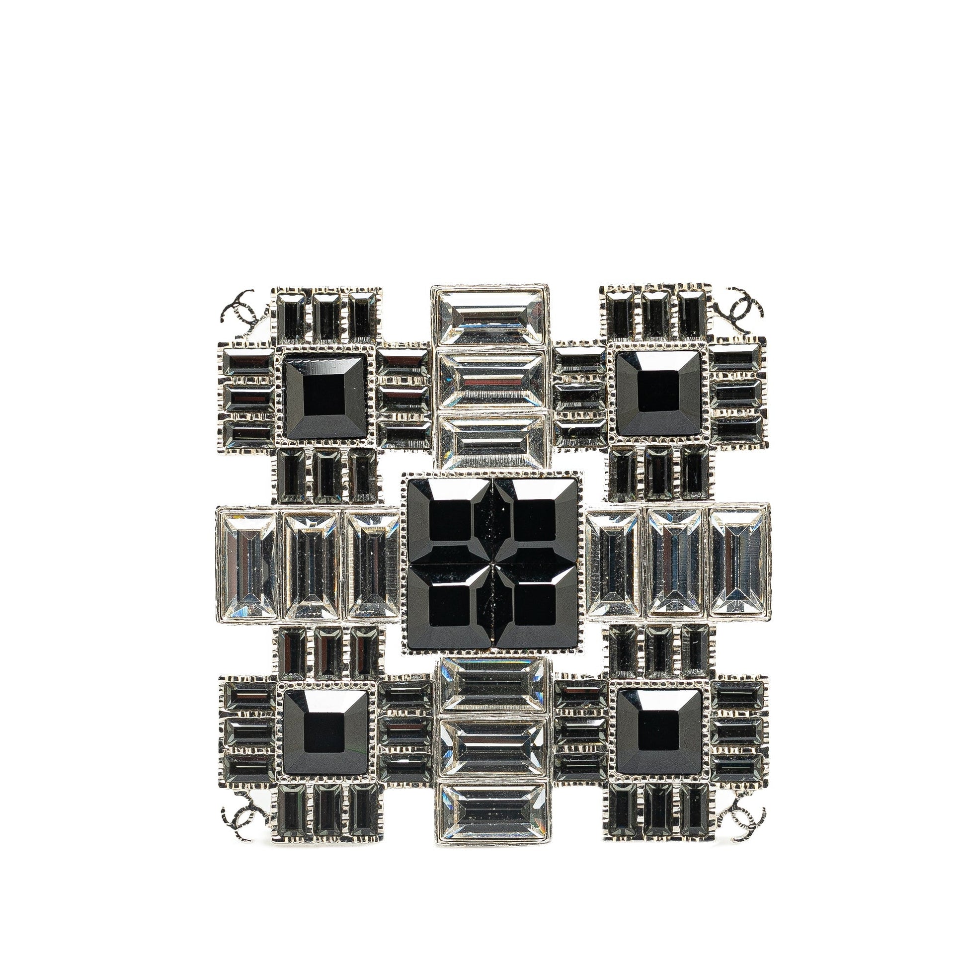 Silver Chanel Silver Plated CC Crystal Square Brooch