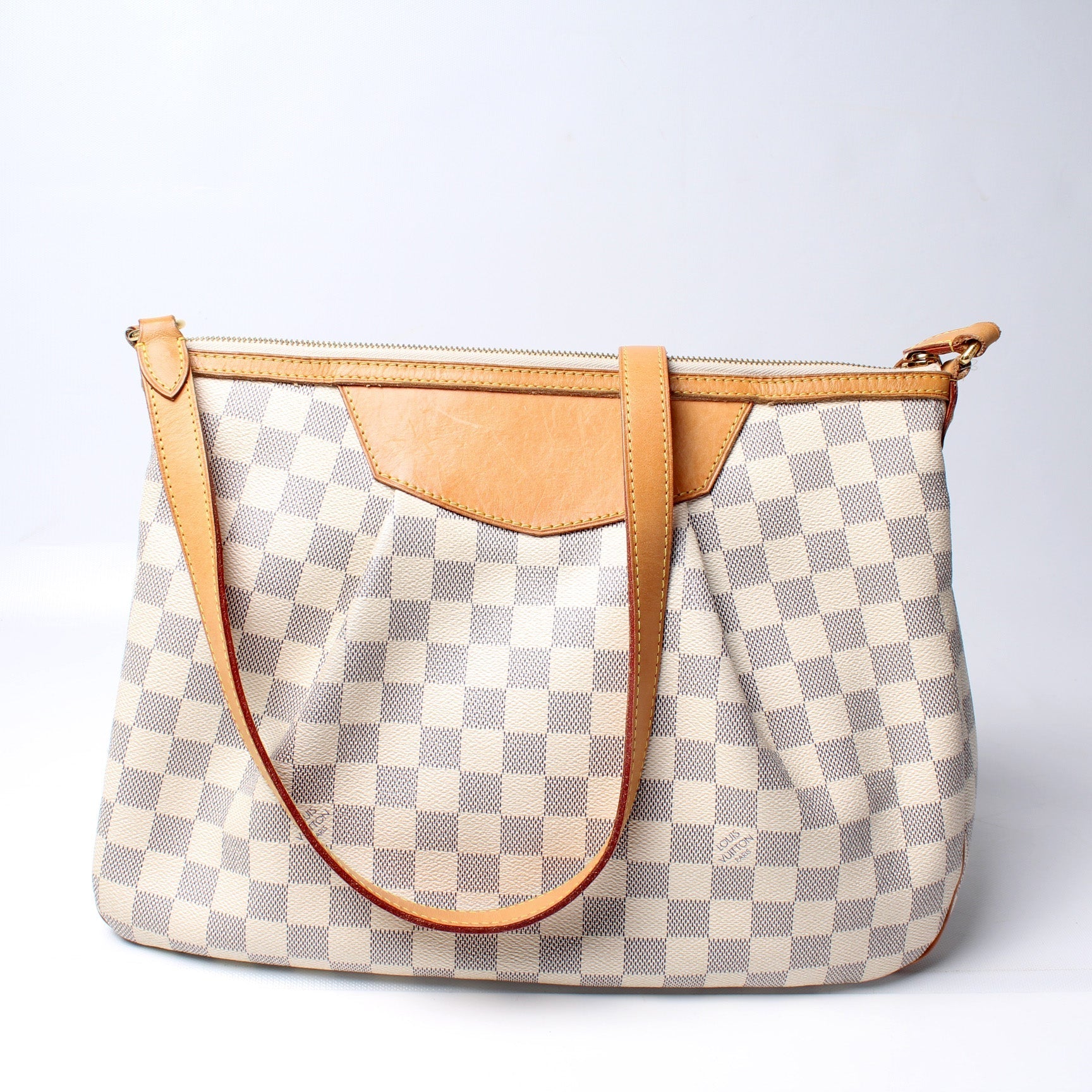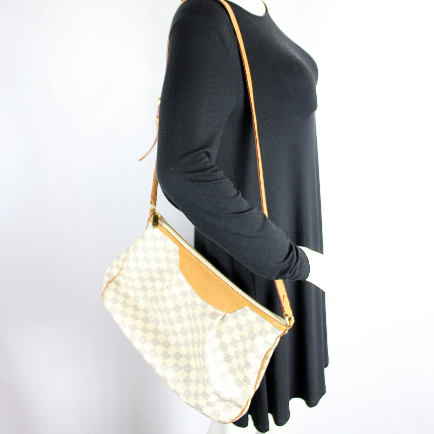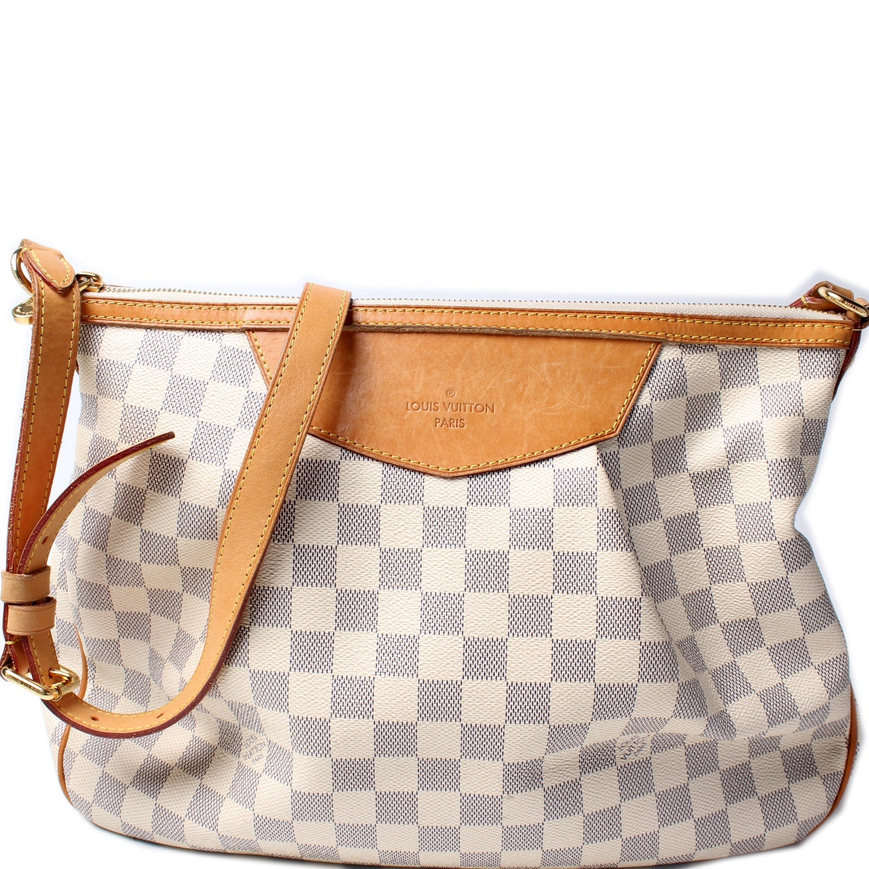 This Louis Vuitton Siracusa PM is guaranteed 100% . The exterior is in the classic Louis Vuitton Damier Azur coated canvas.