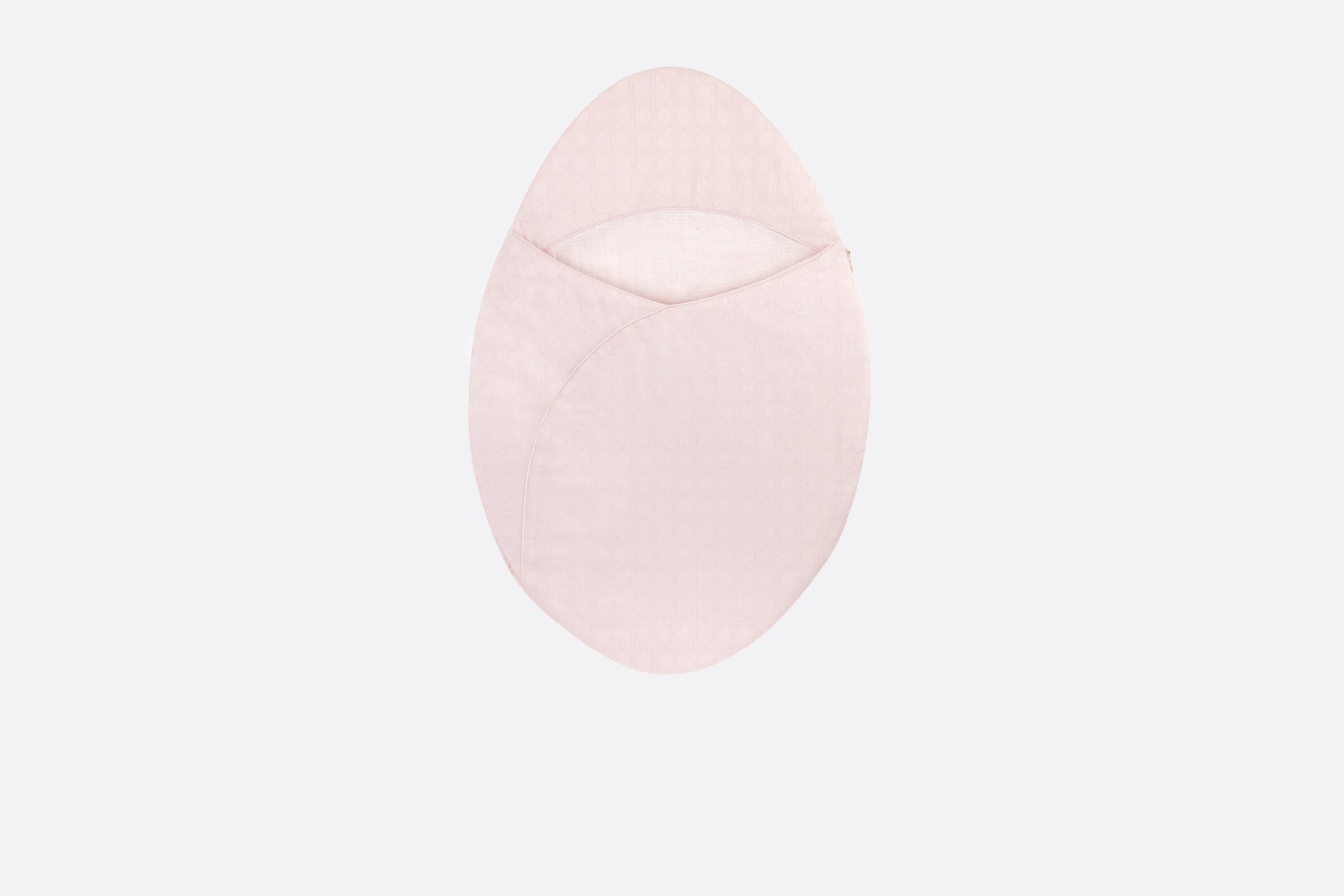 This season, the timeless sleeping bag is revisited with soft, round forms inspired by a pebble. Crafted in pale pink quilted cotton voile, it showcases the House's iconic Cannage motif. A tonal Dior embroidery embellishes the front, while a zip closure on the side allows for easy swaddling. A true ode to comfort, the sleeping bag will make an ideal newborn gift.