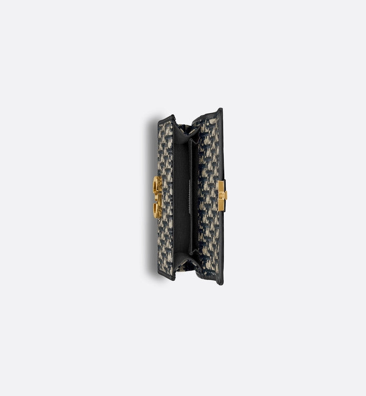 The bag enhances the 30 Montaigne line with a timeless and elegant design crafted in blue Dior Oblique jacquard. The flap has an antique gold-finish metal CD clasp, inspired by the seal of a Christian Dior perfume bottle. Other details, like the embossed 30 Montaigne signature on the back and the military-inspired buckle, highlight the streamlined design. Featuring an adjustable leather shoulder strap, the small 30 Montaigne bag can be carried by hand, worn over the shoulder or crossbody.
