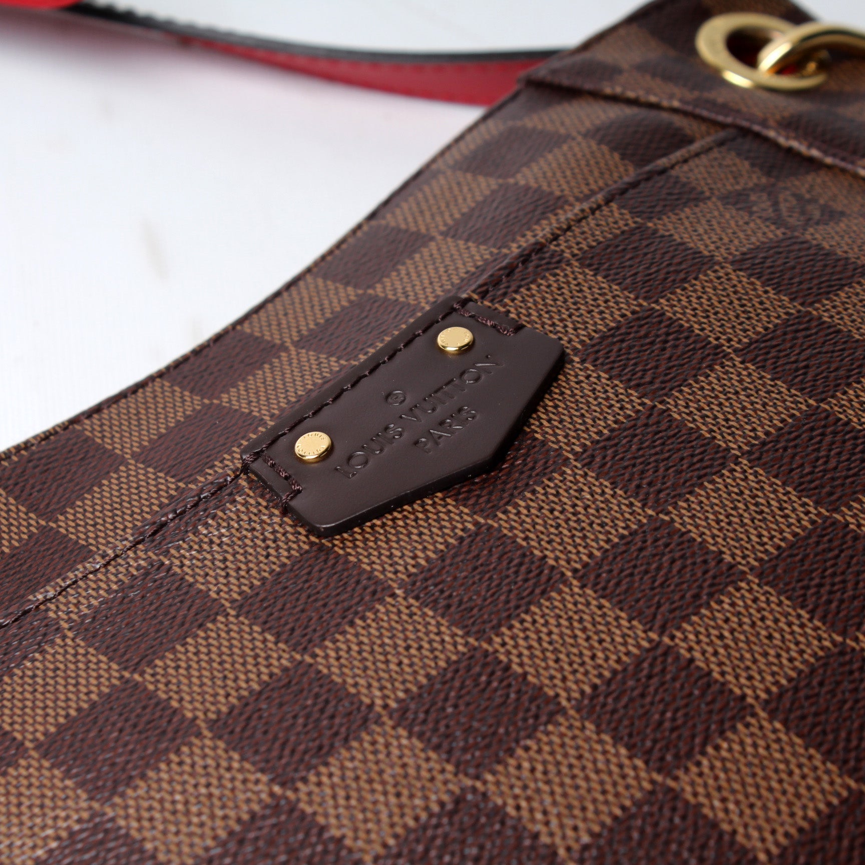 This Louis Vuitton South Bank Besace is guaranteed 100% . The exterior is in the classic Louis Vuitton Damier Ebene coated canvas.