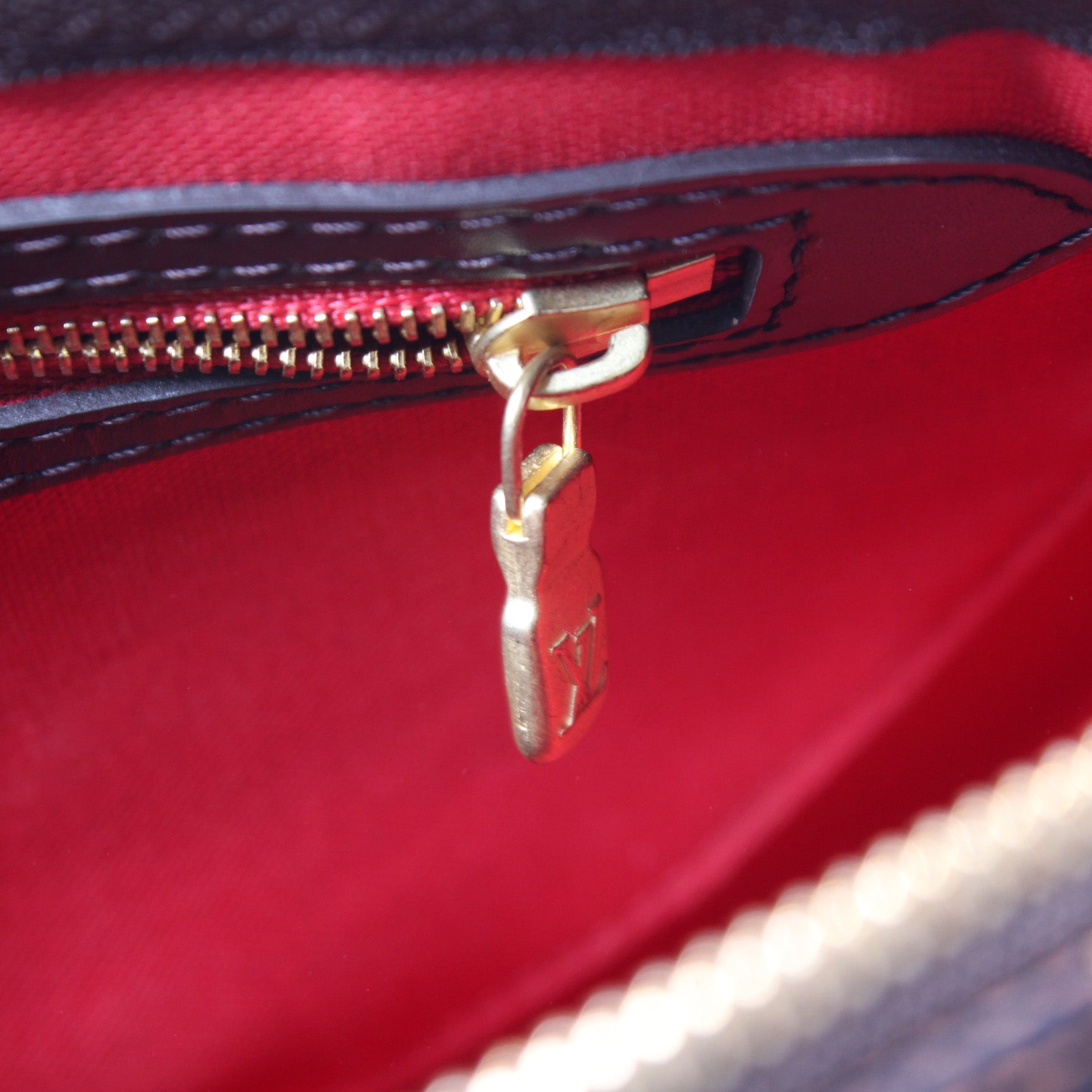 Interior: The interior is clean and free of rips or tears. The interior features one zipper pocket.
