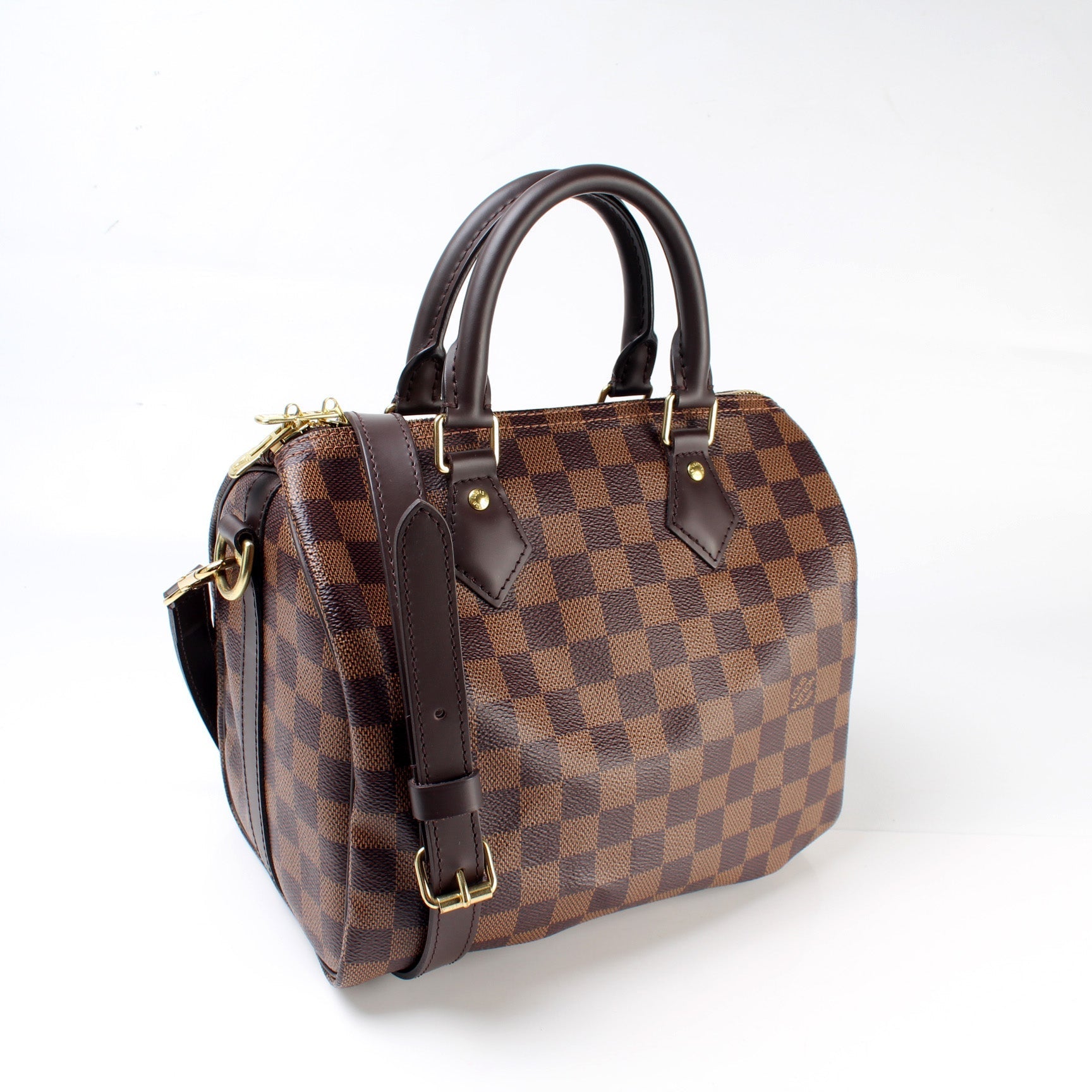 This Louis Vuitton Speedy 25 Bandouliere is guaranteed 100% . The exterior is in the classic Louis Vuitton Damier Ebene coated canvas.
