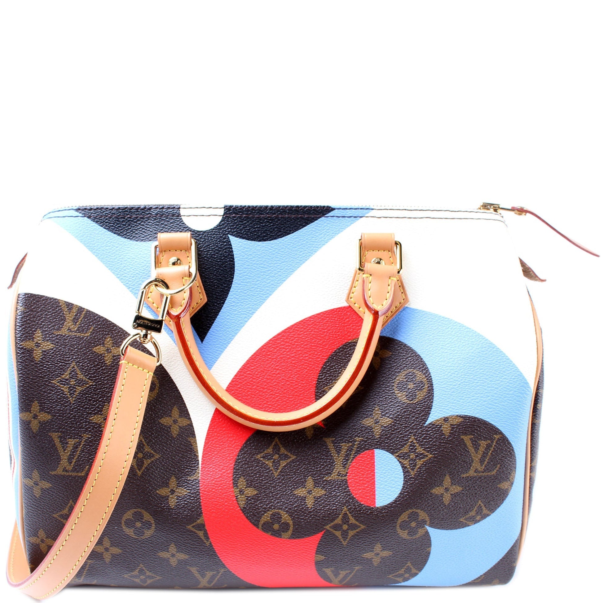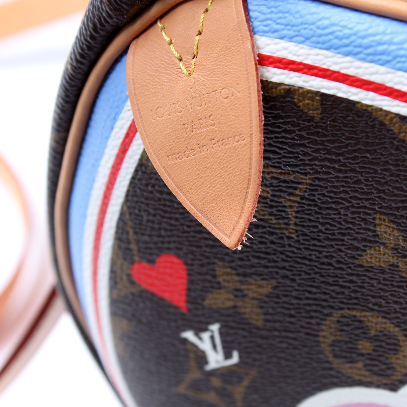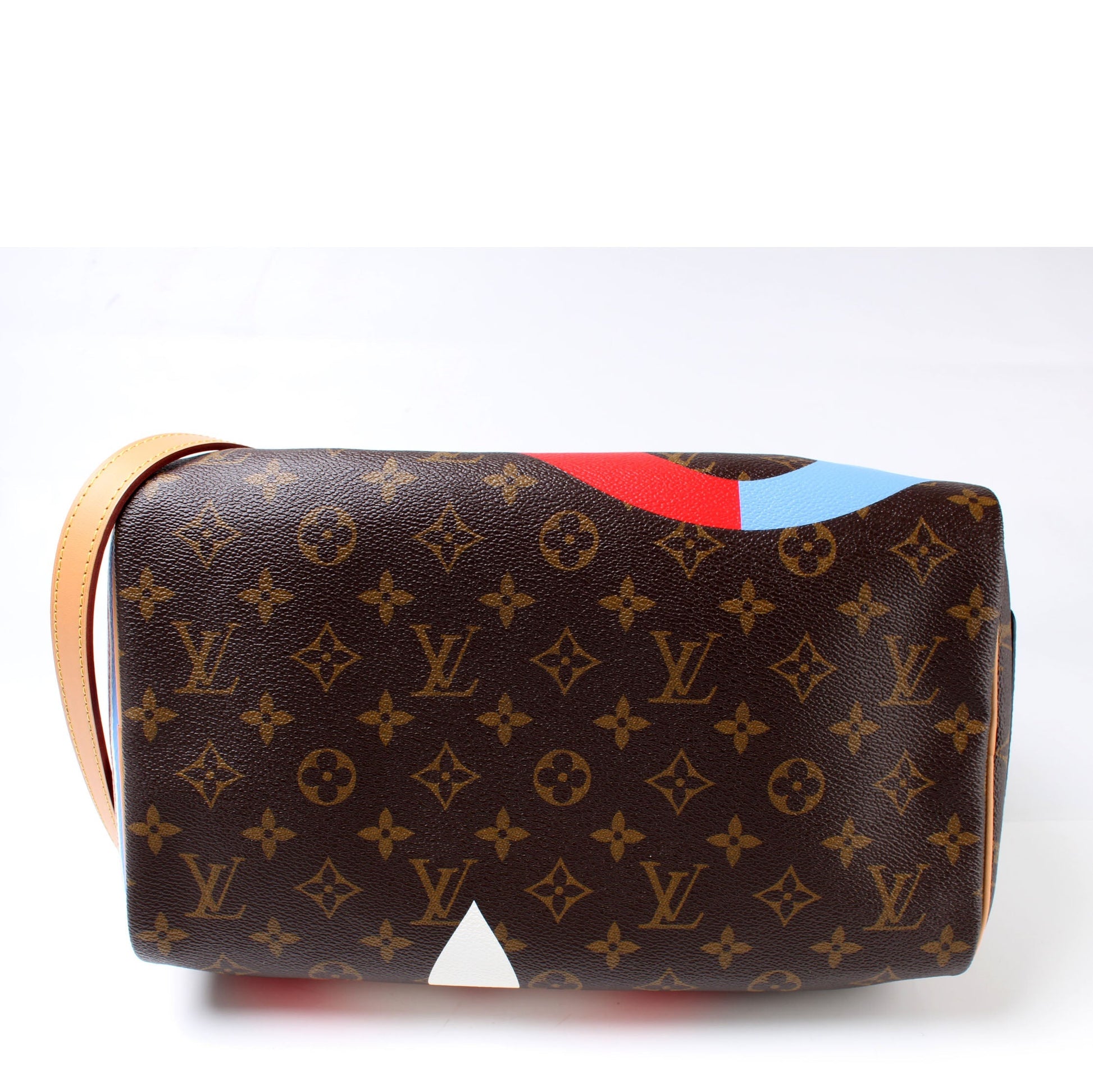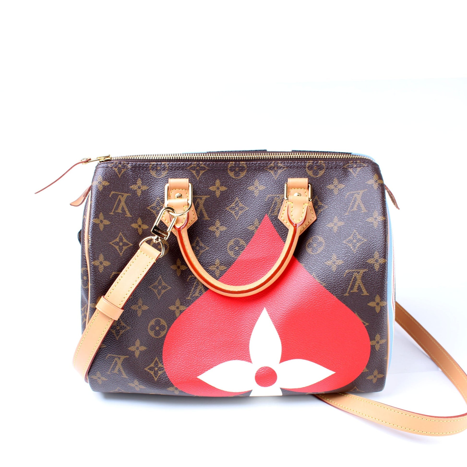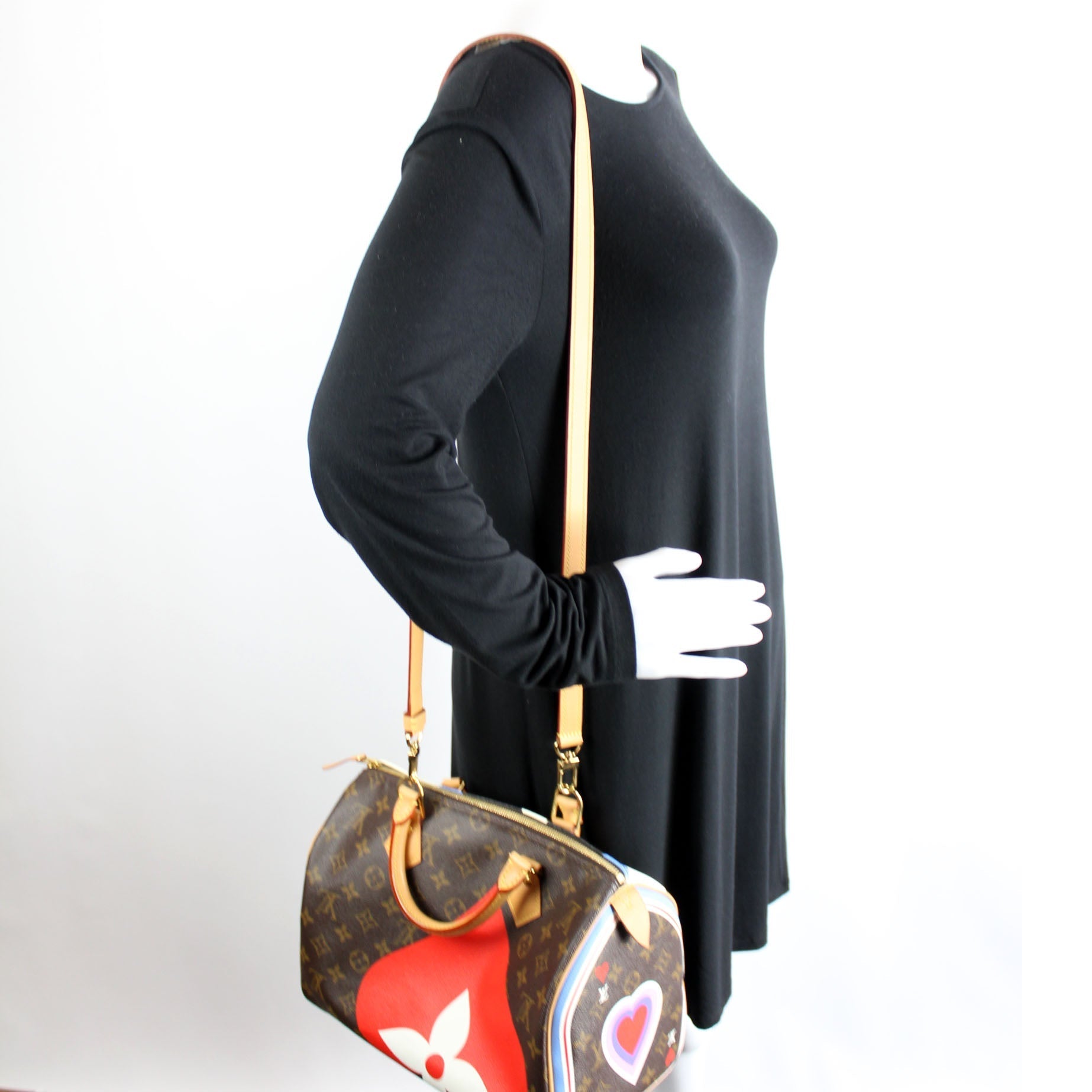 This Louis Vuitton Speedy 30 Bandouliere Game On is guaranteed 100% . The exterior is in the classic Louis Vuitton Monogram coated canvas.
