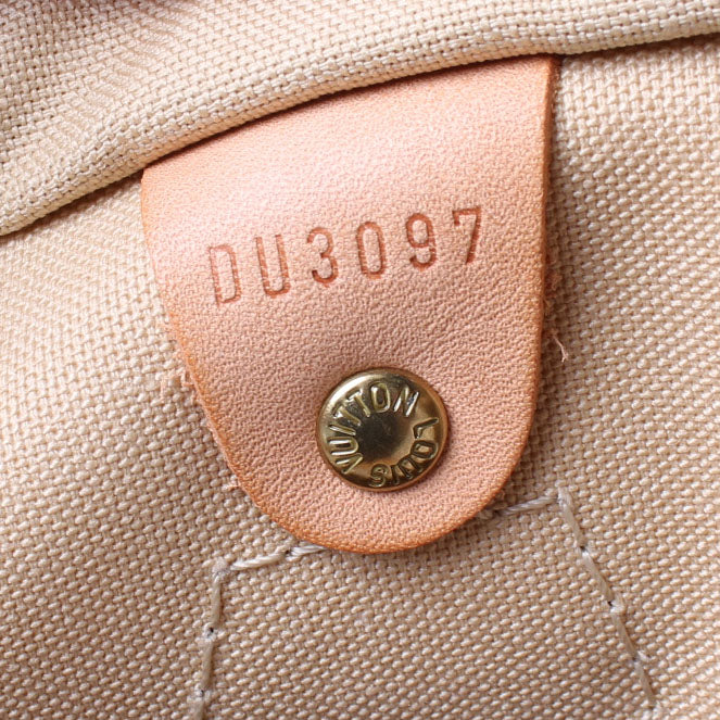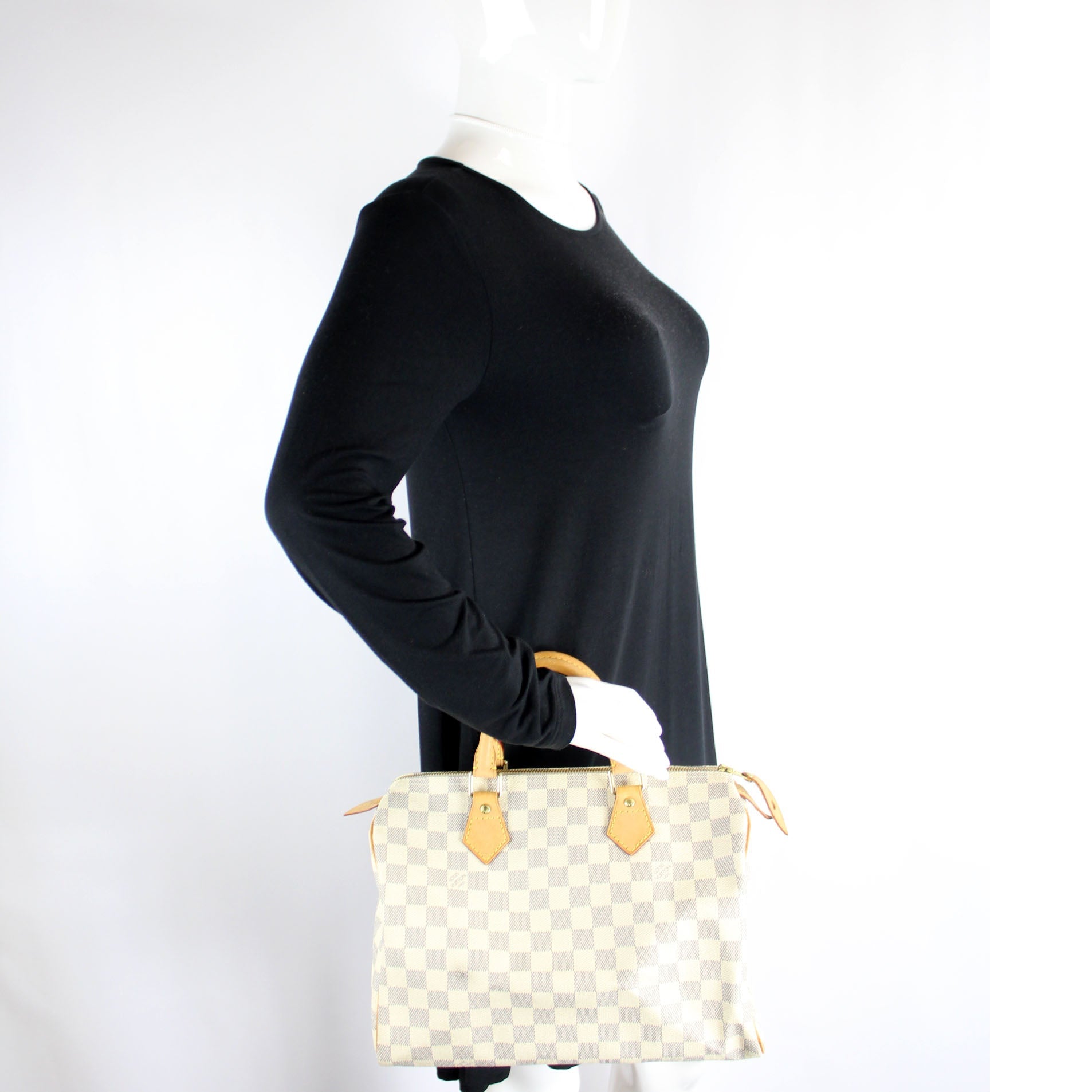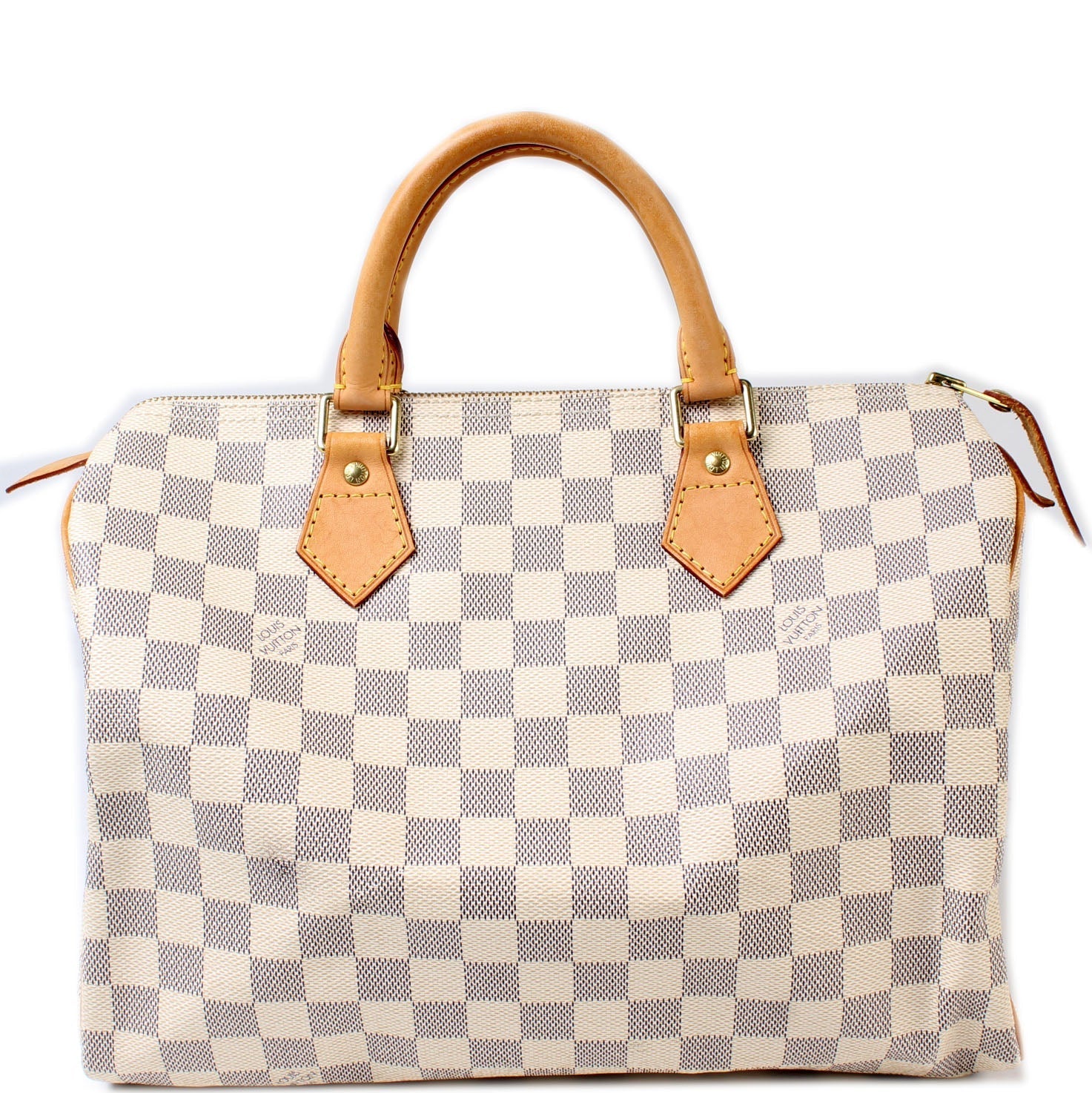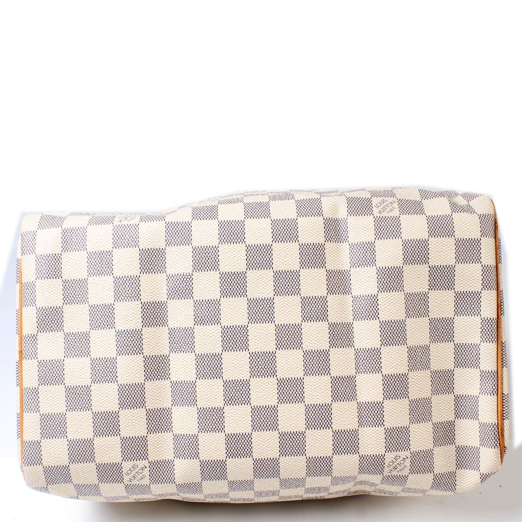 This Louis Vuitton Speedy 30 is guaranteed 100% . The exterior is in the classic Damier Azur coated canvas.