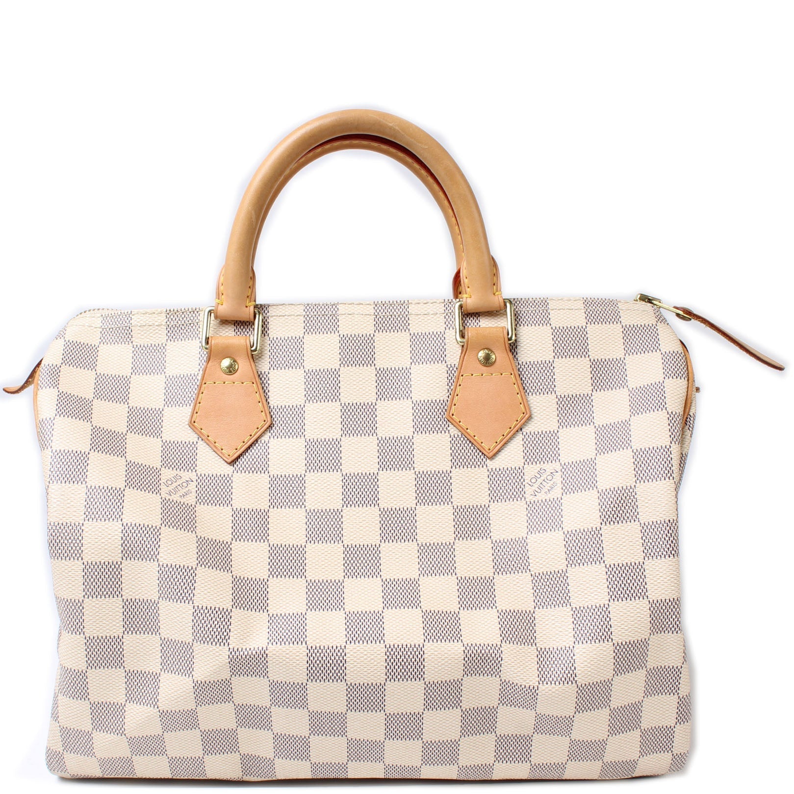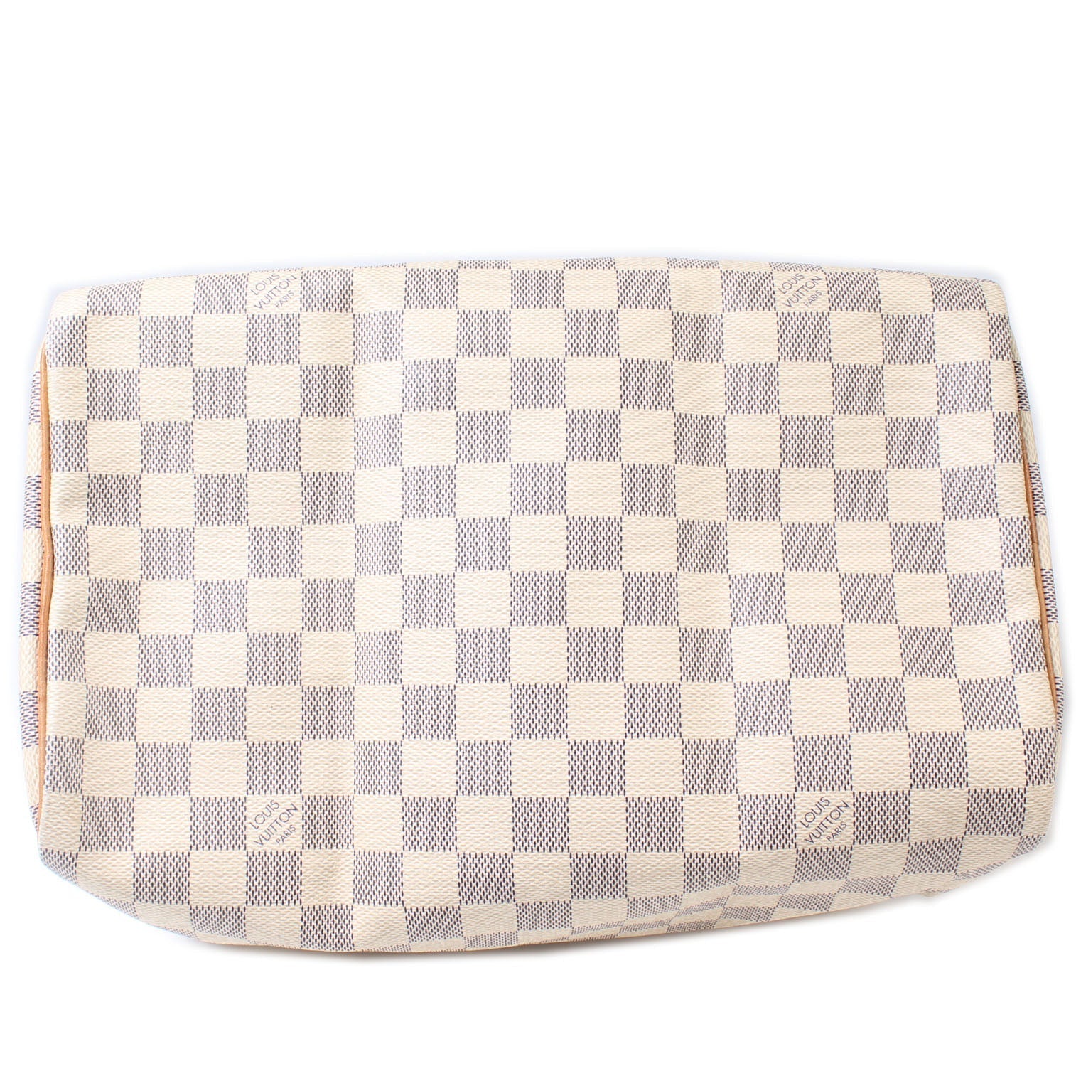 This Louis Vuitton Speedy 30 is guaranteed 100% . The exterior is in the classic Damier Azur coated canvas.