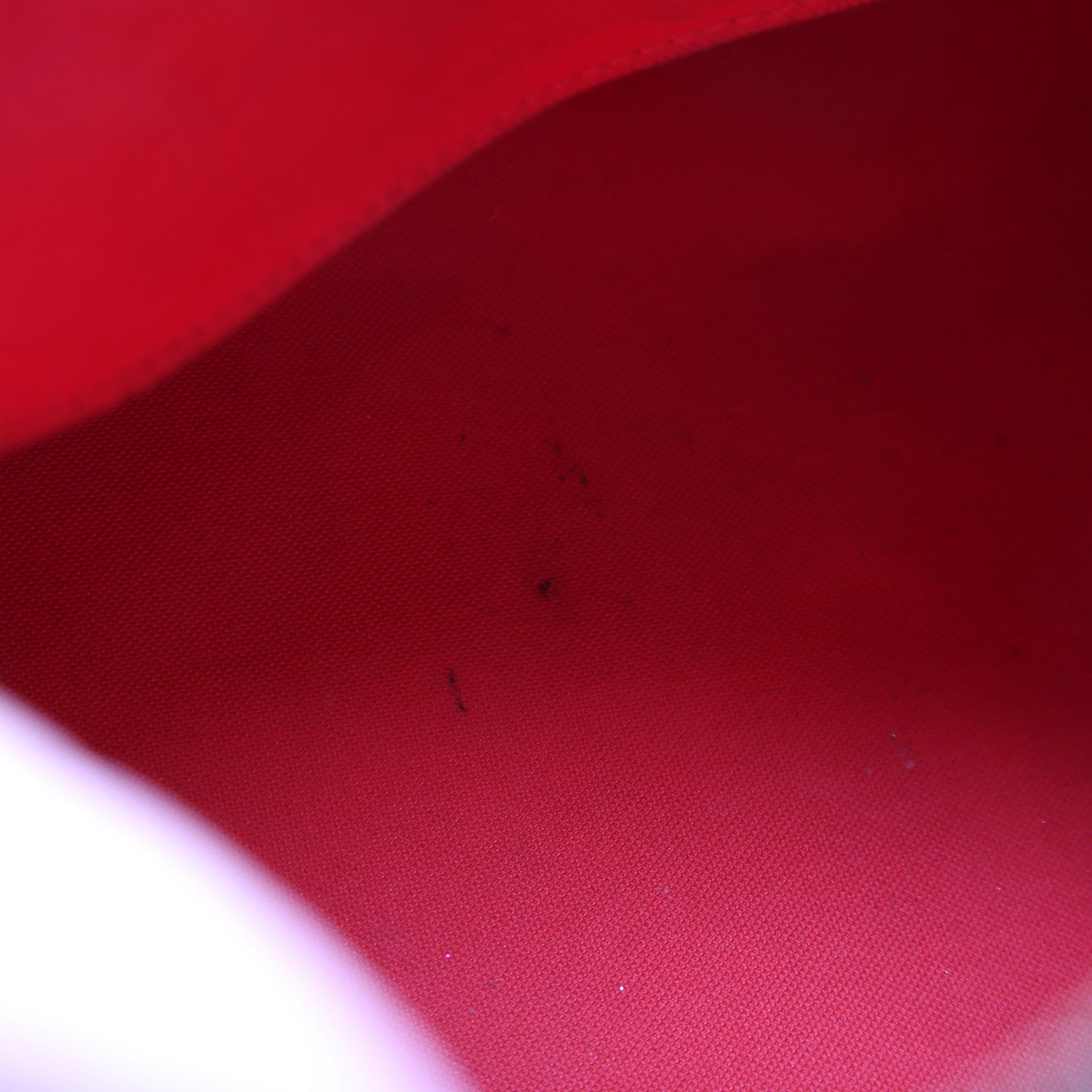 Interior: The interior has pen marks and wear . The interior features zip closure open pocket.