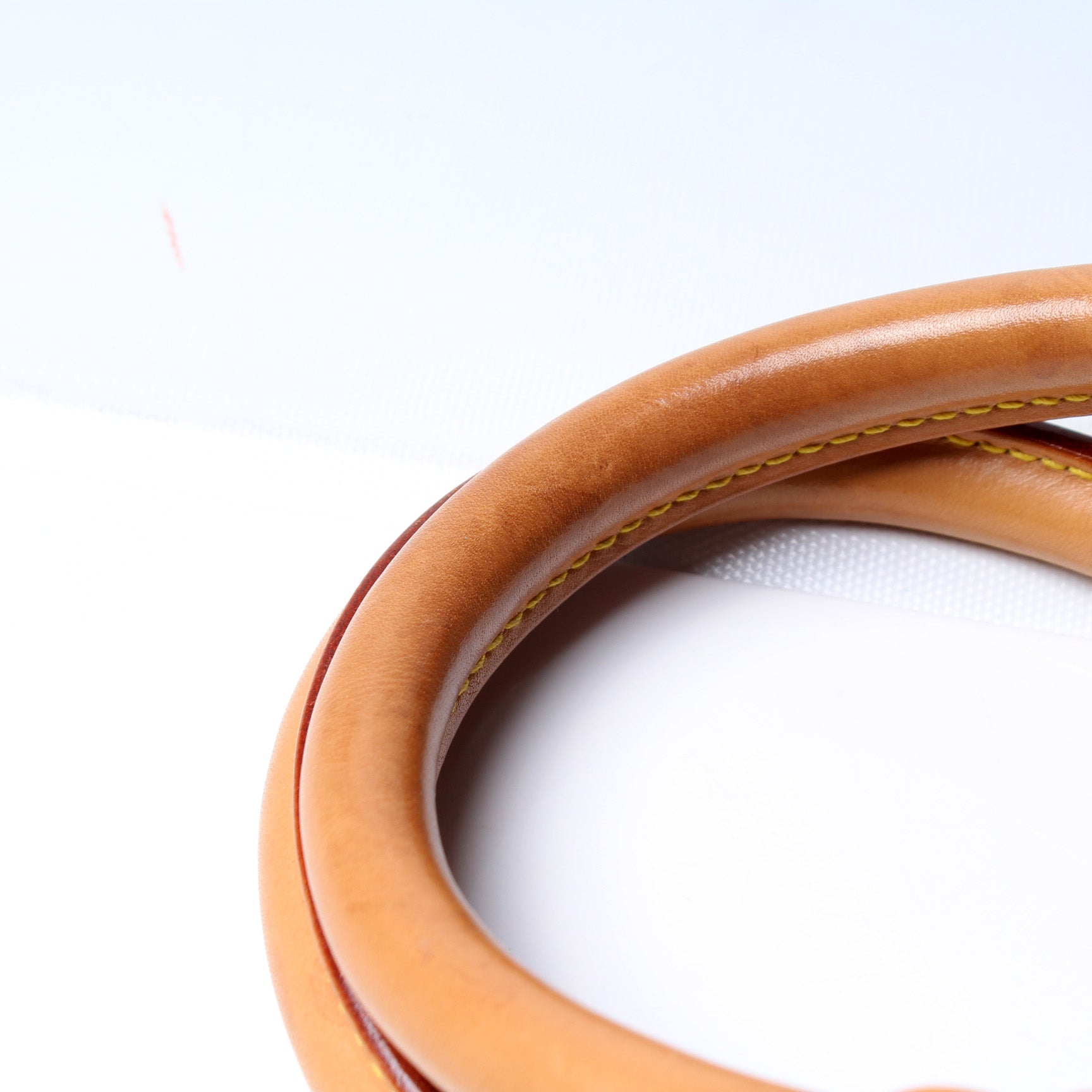 Handle: The leather handles show minor wear and discoloration as pictured.