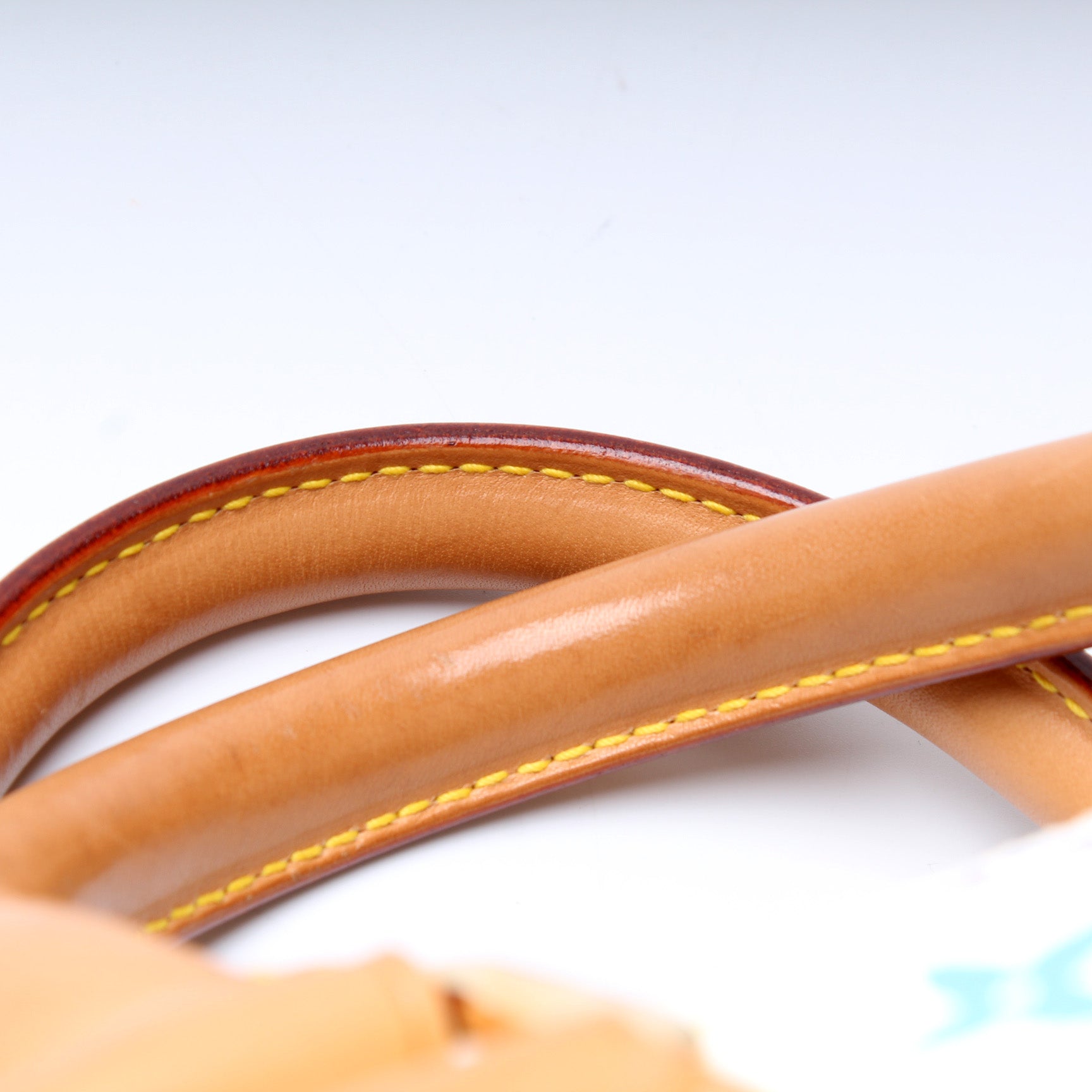 Handle: The leather handles show minor wear and discoloration as pictured.