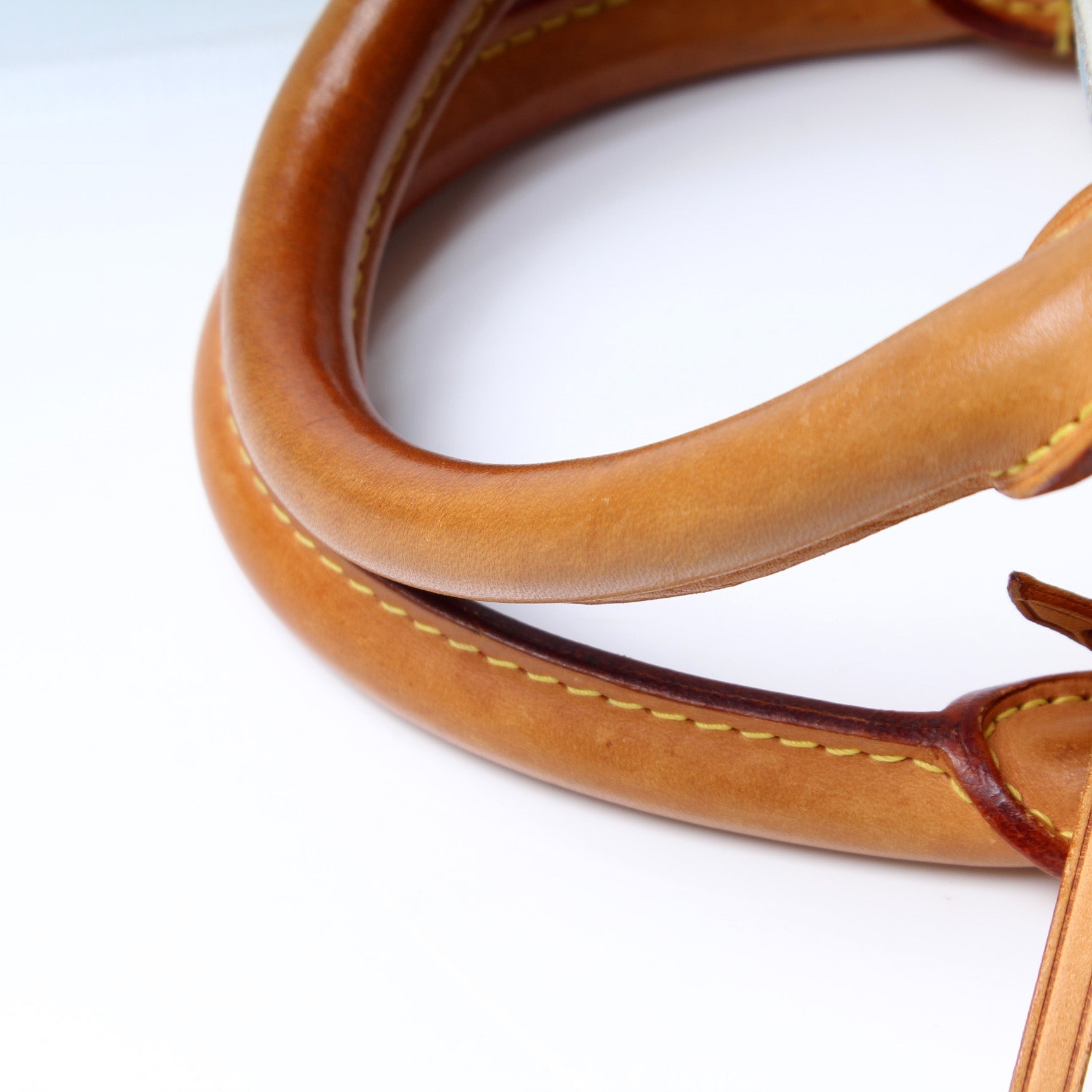 Handle: The leather handles show minor wear and discoloration as pictured.