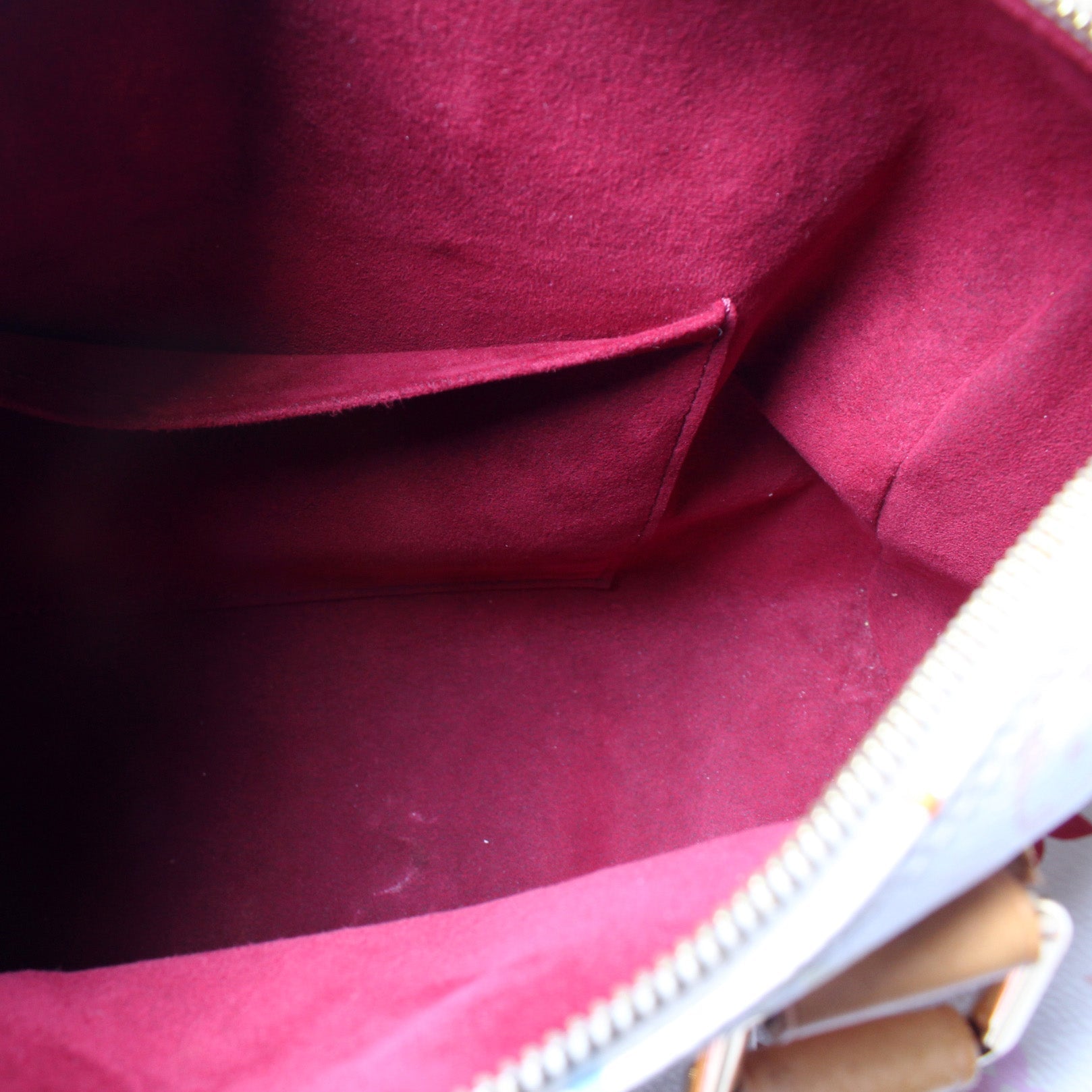 Interior: The interior is clean and free of rips or tears. The interior features one open pocket.