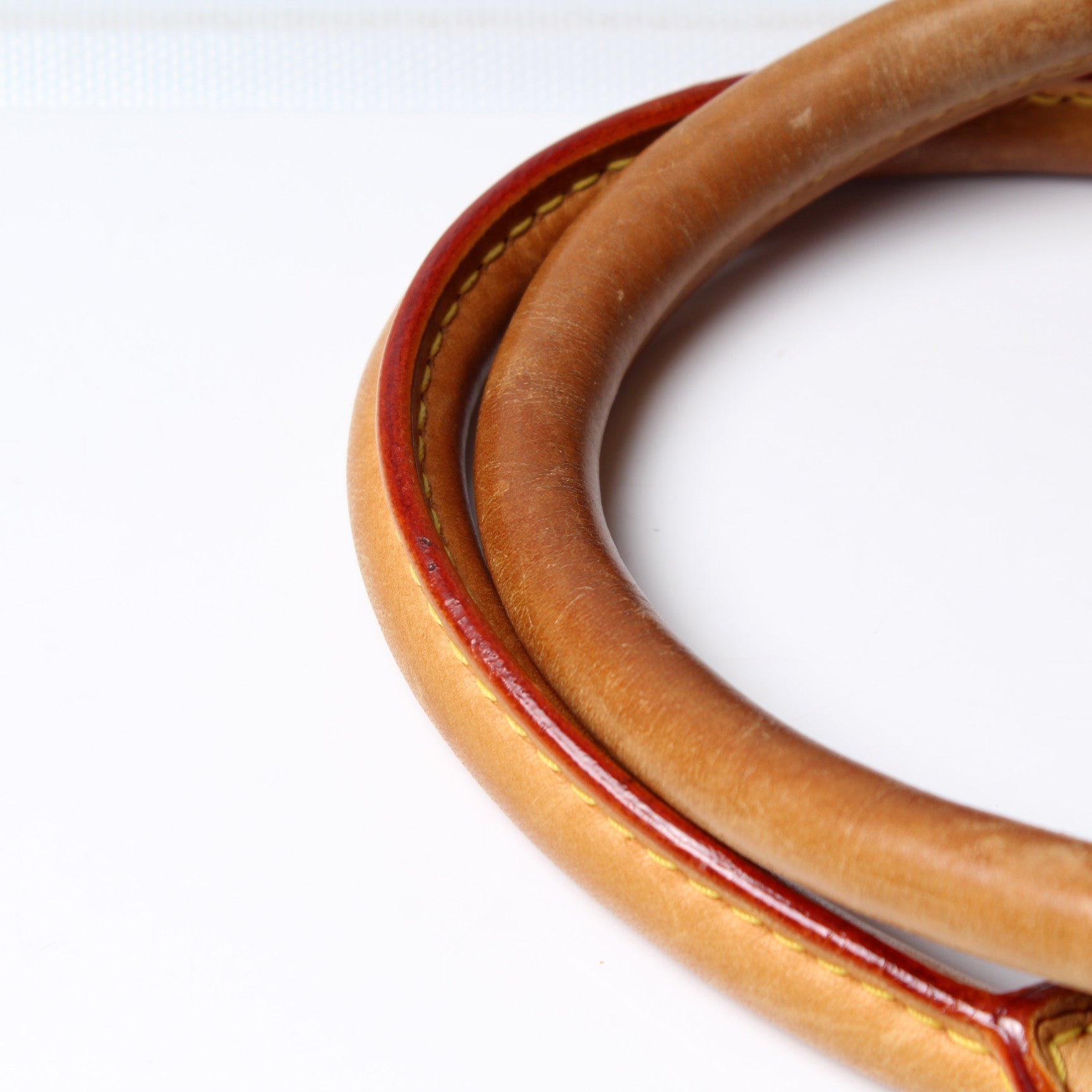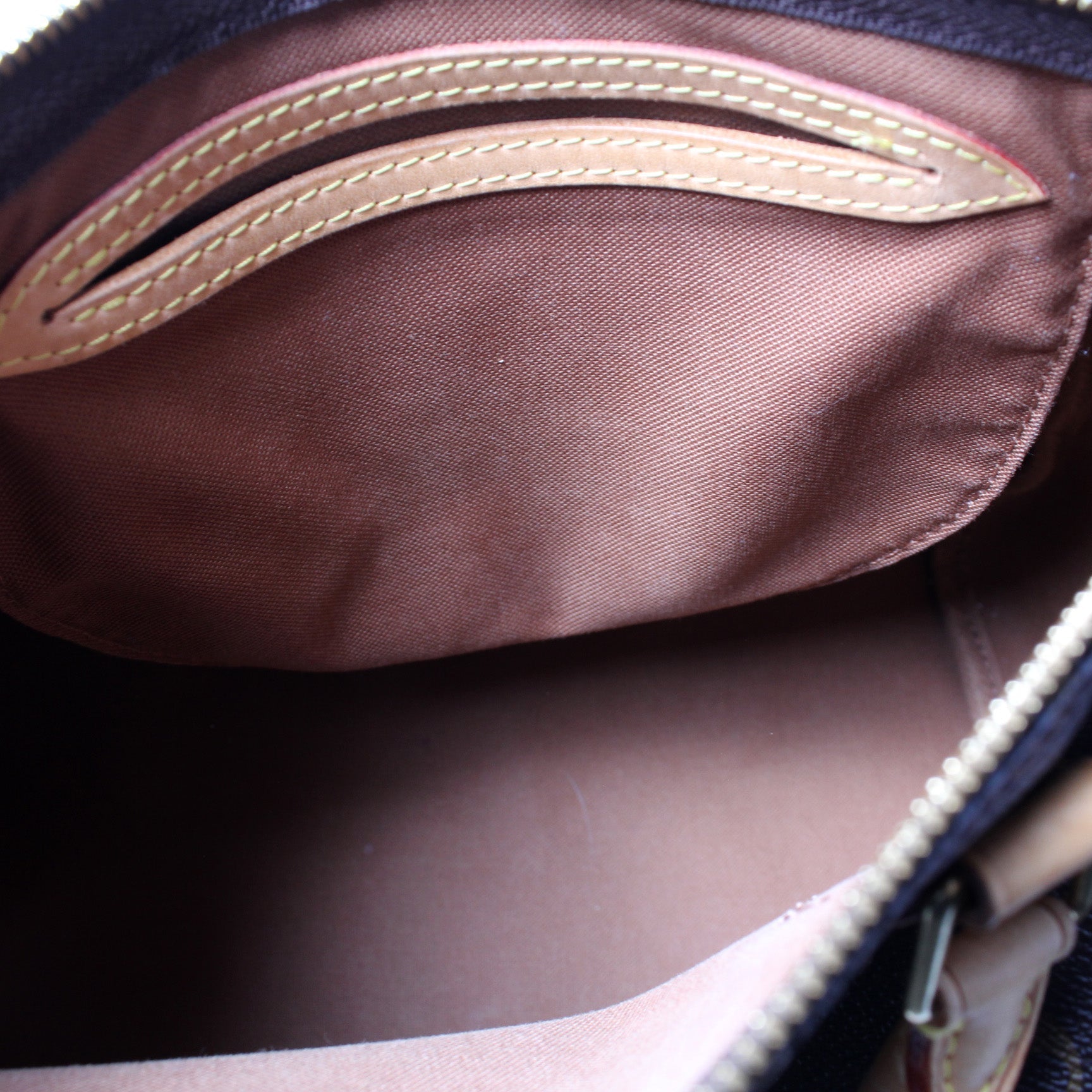 Exterior: The exterior coated canvas is free of any rips or cracks. The corners show minor signs of wear. The leather details show minor discoloration.