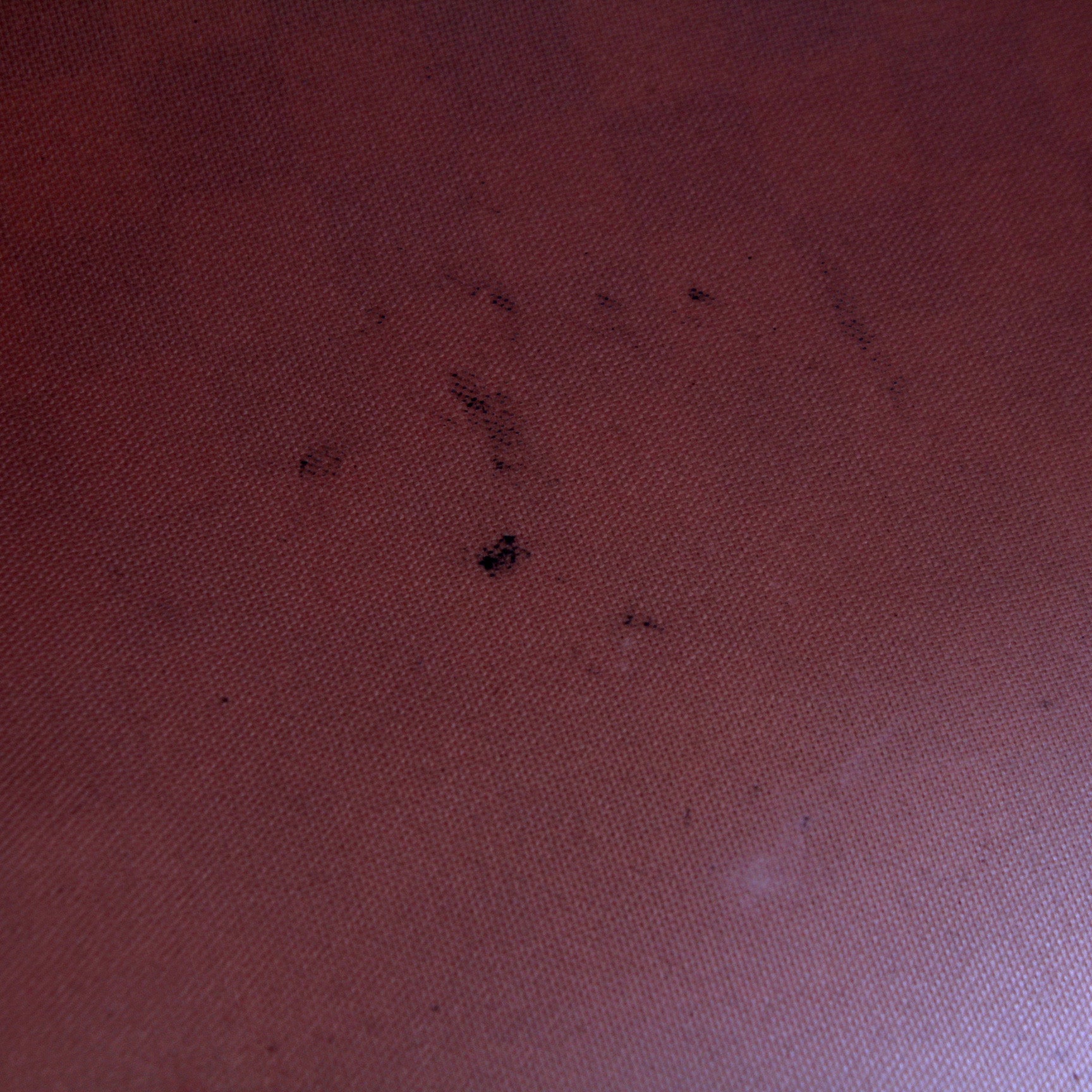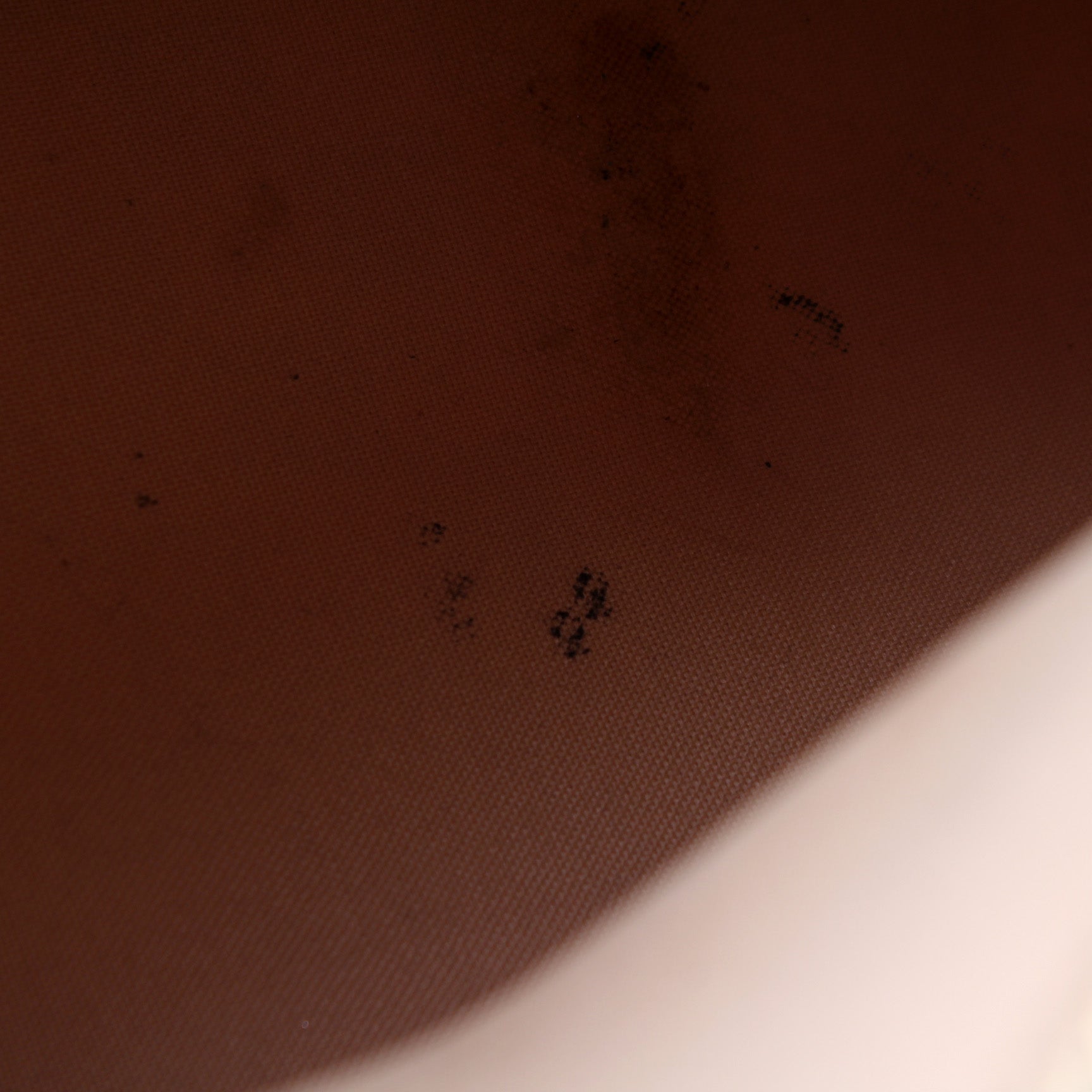 Interior: The interior shows discoloration and staining. The interior features one open pocket.
