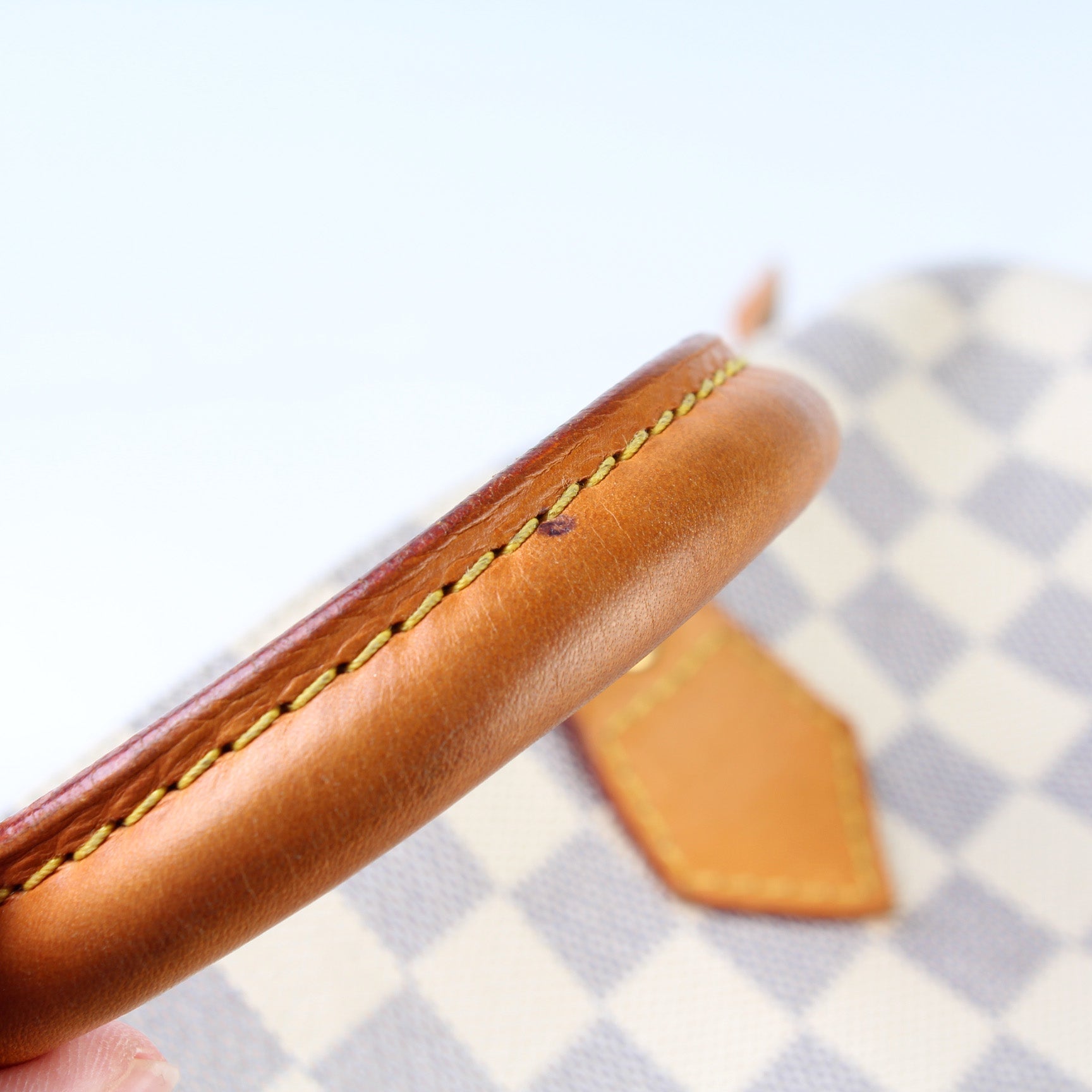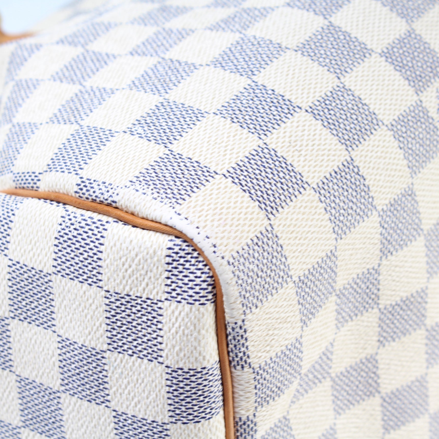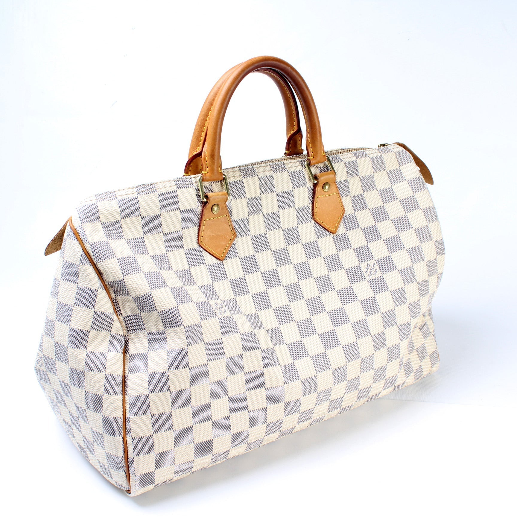 This Louis Vuitton Speedy 35 is guaranteed 100% . The exterior is in the classic Louis Vuitton Damier Azur coated canvas.