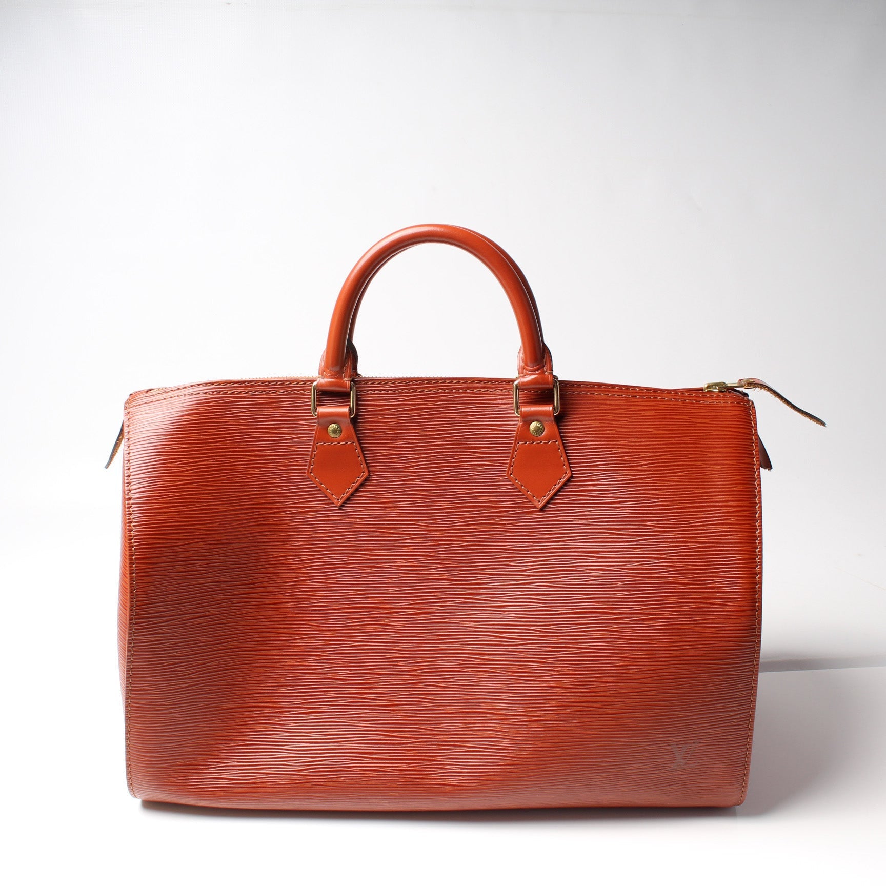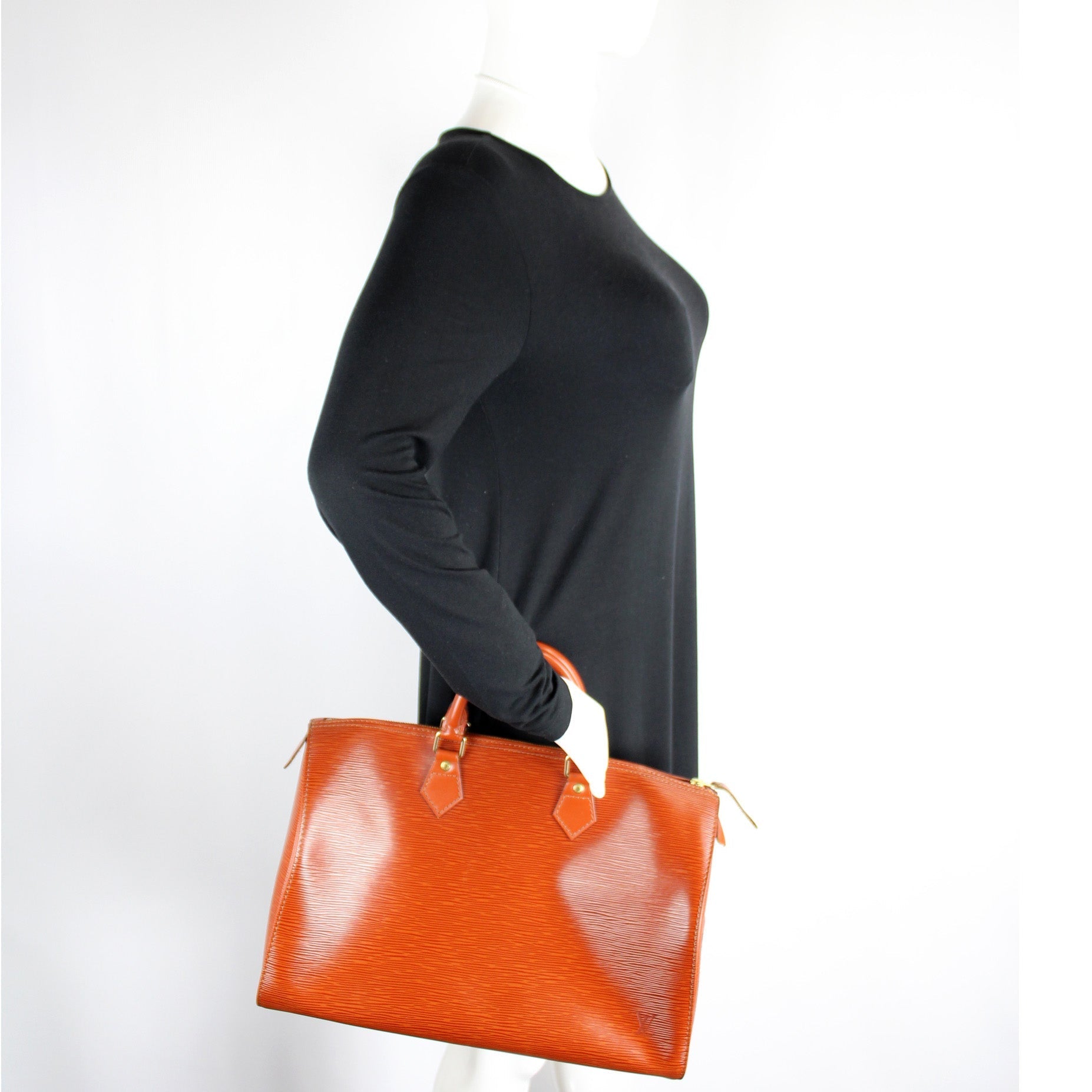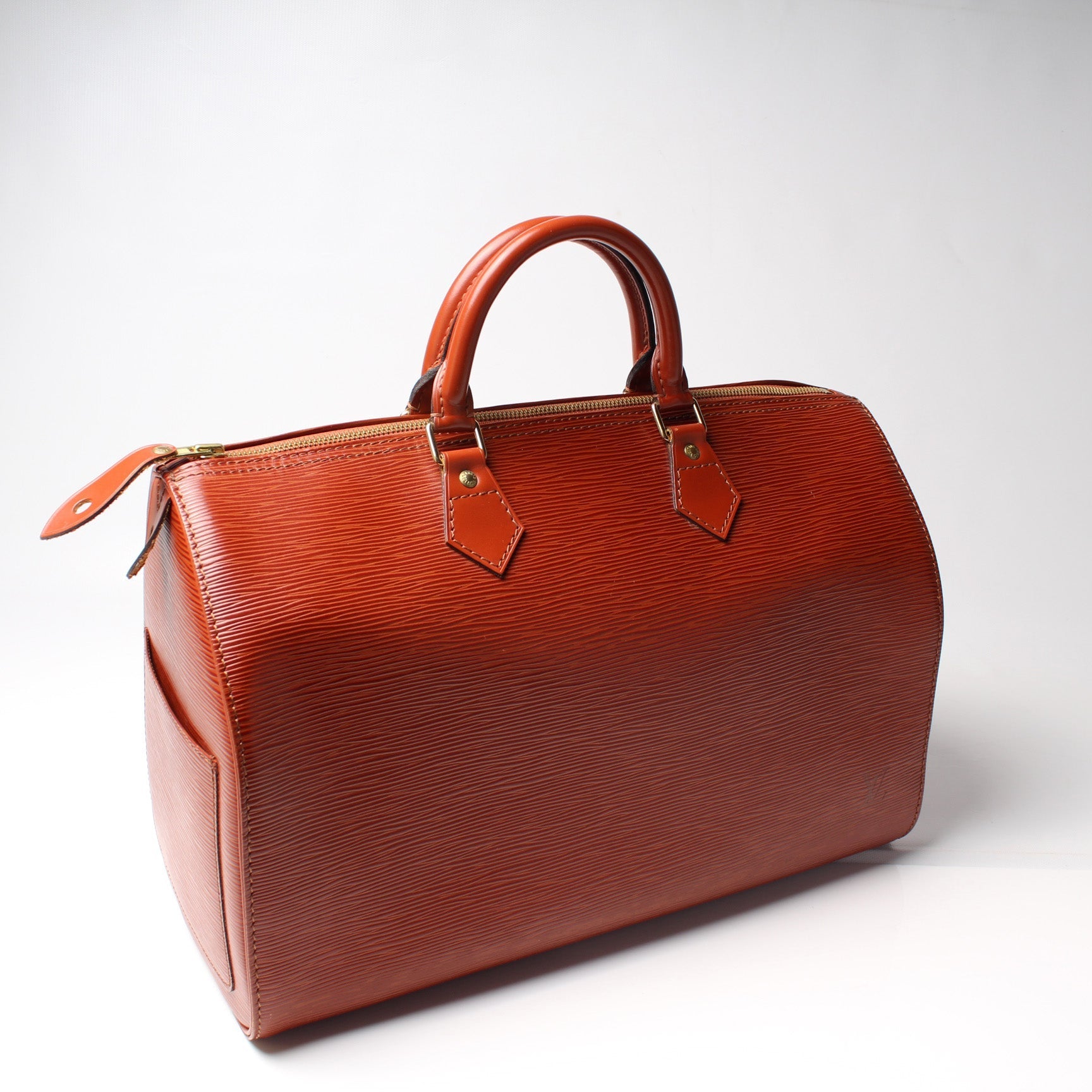 This Louis Vuitton Speedy 35 is guaranteed 100% . The exterior is in the classic Louis Vuitton Epi leather.