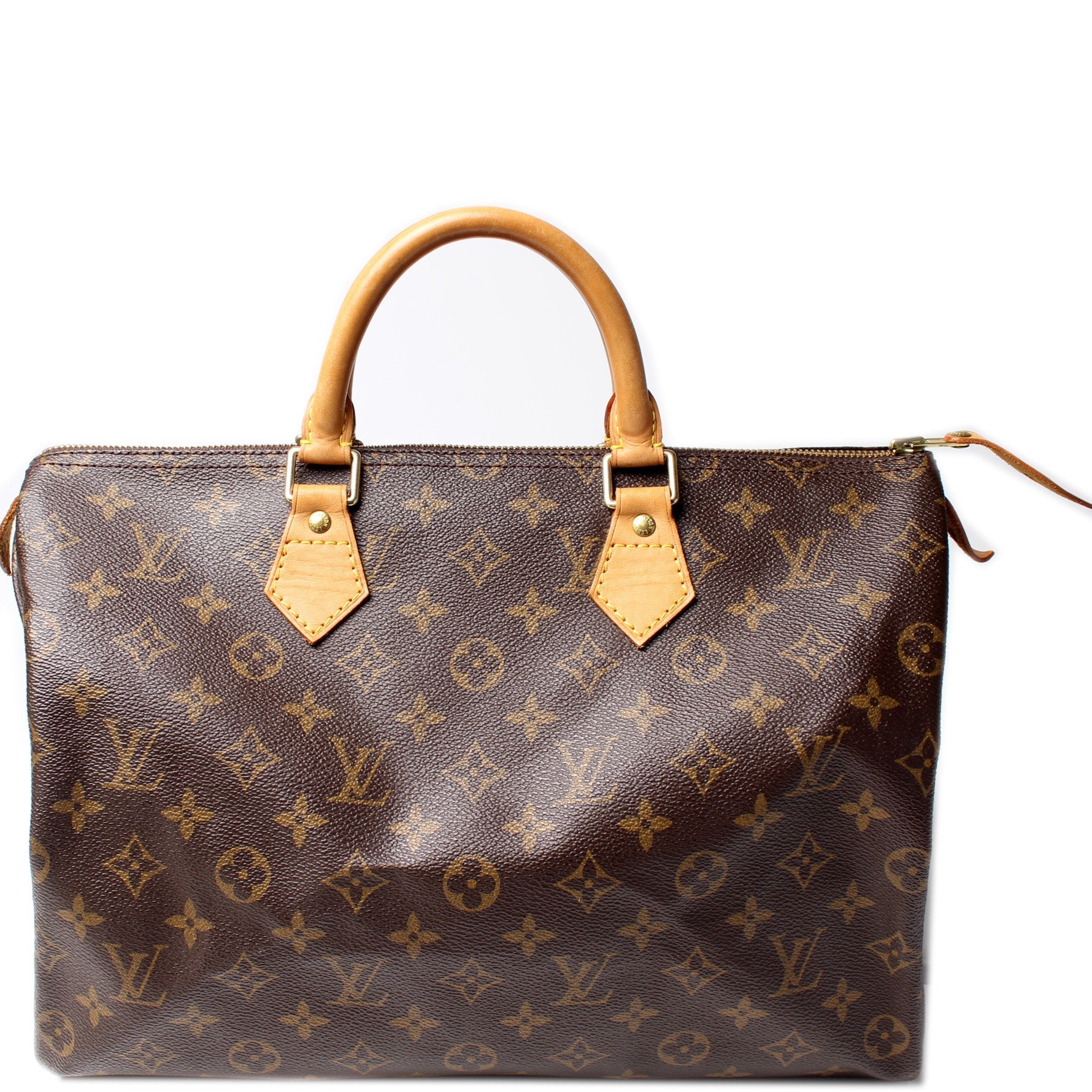 This Louis Vuitton Speedy 35 is guaranteed 100% . The exterior is in the classic Louis Vuitton Monogram coated canvas.