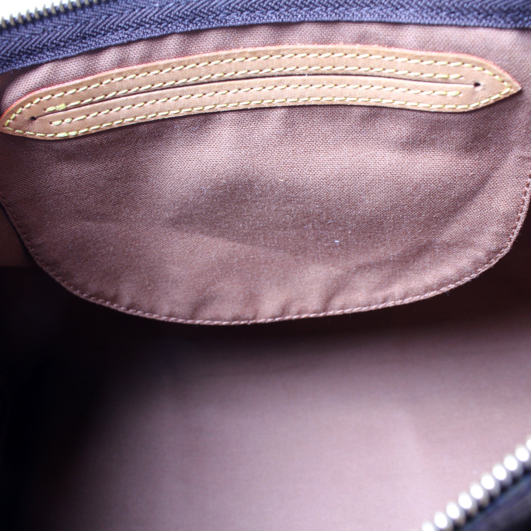 Hardware: The zipper operates properly and runs smoothly. The hardware has minor wear.