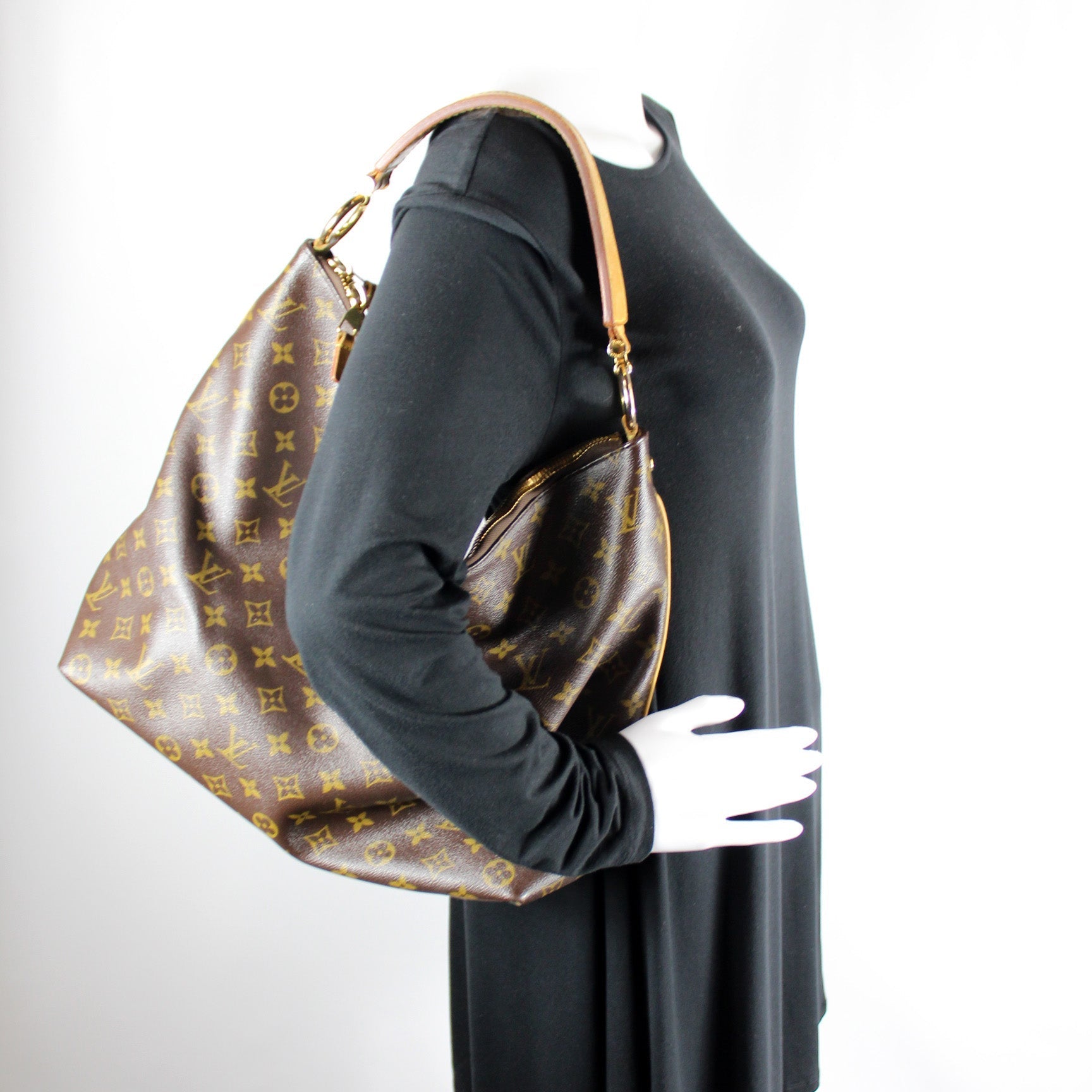 This Louis Vuitton Sully MM is guaranteed 100% . The exterior is in the classic Monogram coated canvas.