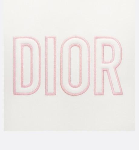 The short-sleeved cotton jersey T-shirt is a comfortable creation. Crafted in white cotton jersey, it is embellished with a pale pink raised 'DIOR' embroidery in metallic thread. The style has a regular fit with a ribbed crew neck and can be paired with a pinafore dress for a casual look.