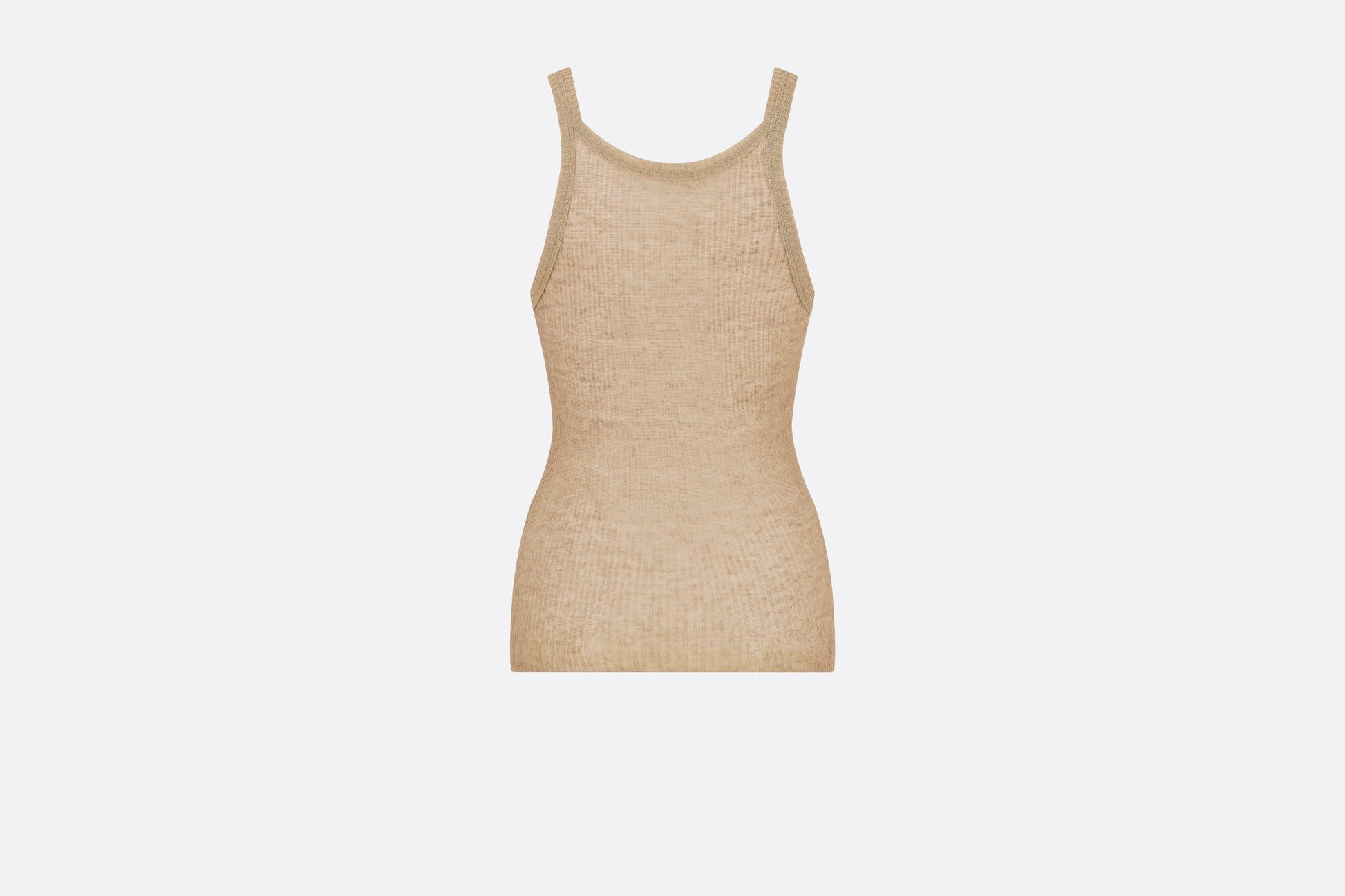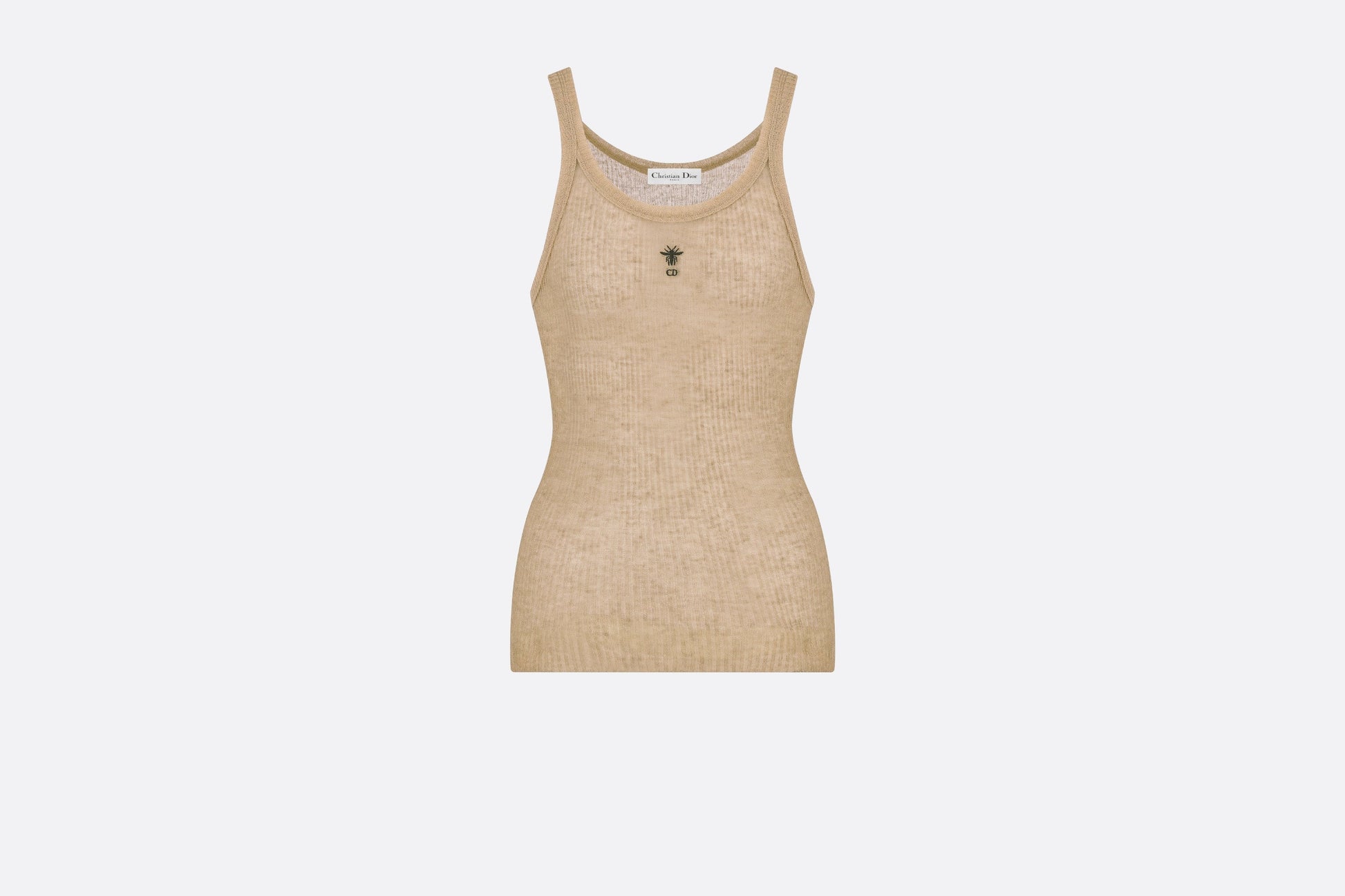 The beige technical linen ribbed knit tank top is a timeless piece. Its fitted cut features the embroidered bee emblem and thin straps. The tank top will enhance any attire.