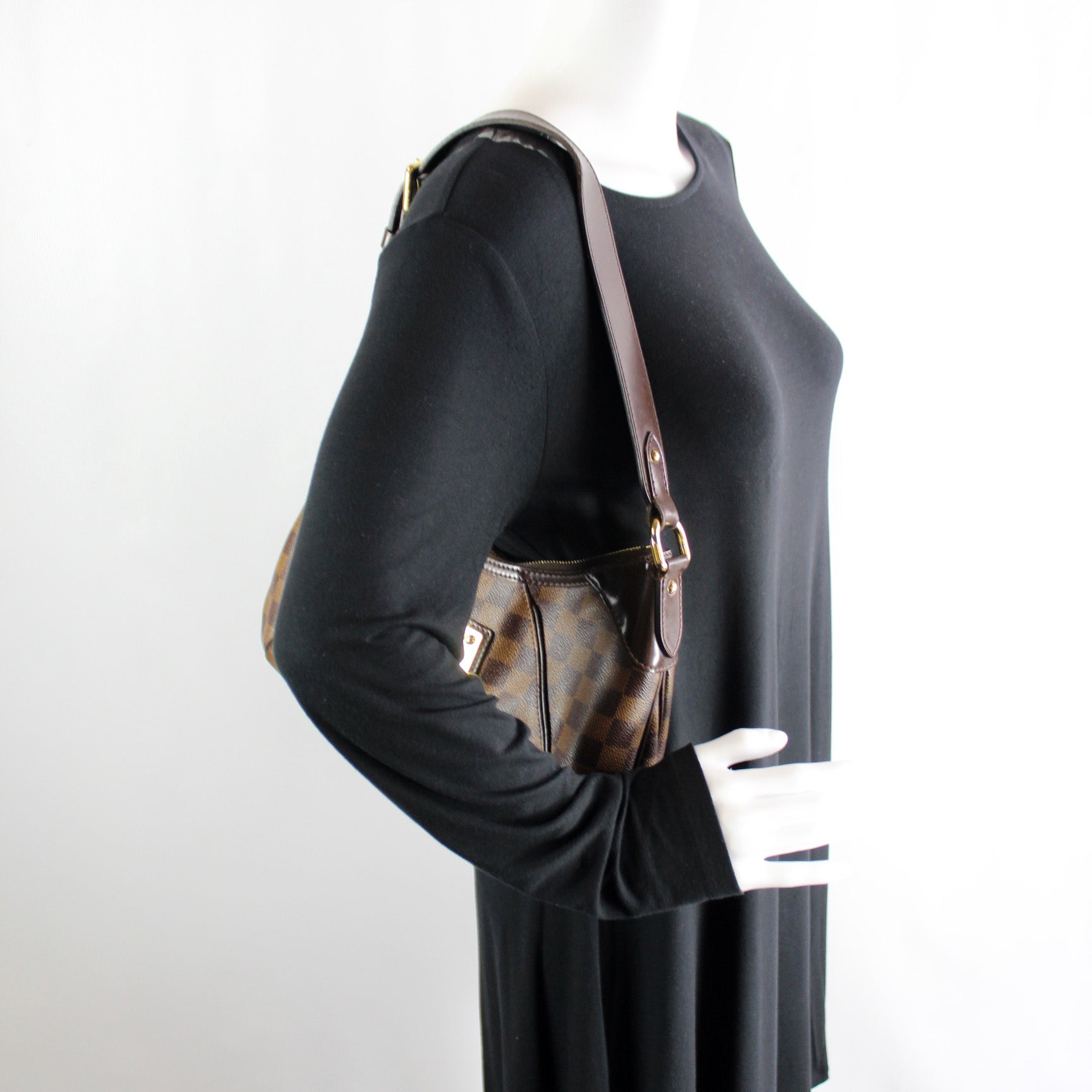 This Louis Vuitton Thames PM is guaranteed 100% . The exterior is in the classic Damier Ebene coated canvas.