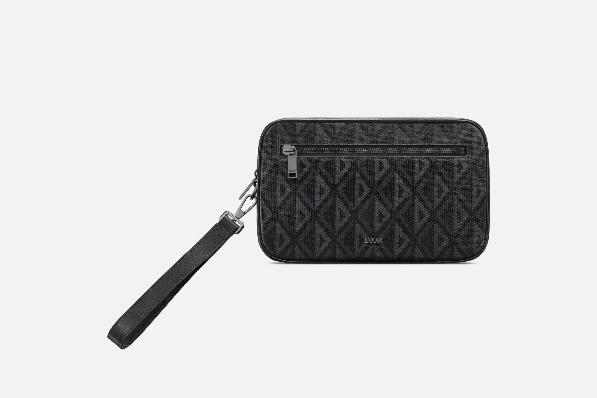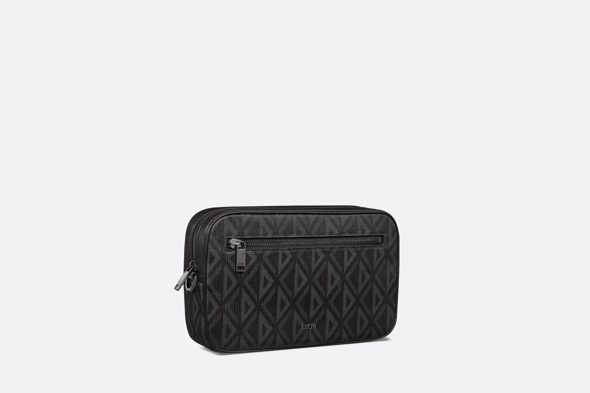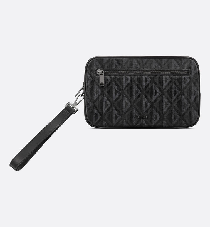 The toiletry bag is a practical piece with a streamlined design. Crafted in black CD Diamond canvas inspired by the House's archives, the design is enhanced by tonal smooth calfskin details. Its spacious zipped compartment features a zipped pocket on the front. Thanks to its removable leather strap, the toiletry bag can be carried by hand or slipped into a bag.