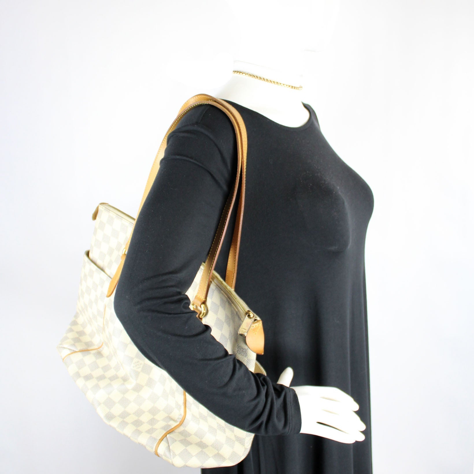 This Louis Vuitton Totally MM is guaranteed 100% . The exterior is in the classic Louis Vuitton Damier Azur coated canvas.