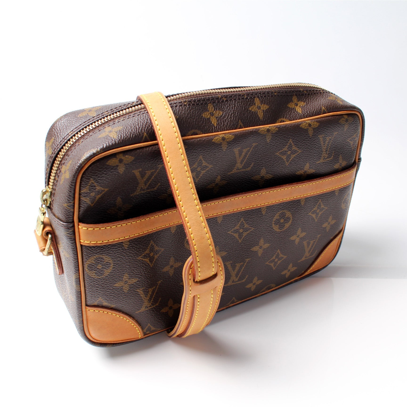 This Louis Vuitton Trocadero 27 is guaranteed 100% . The exterior is in the classic Louis Vuitton Monogram coated canvas.