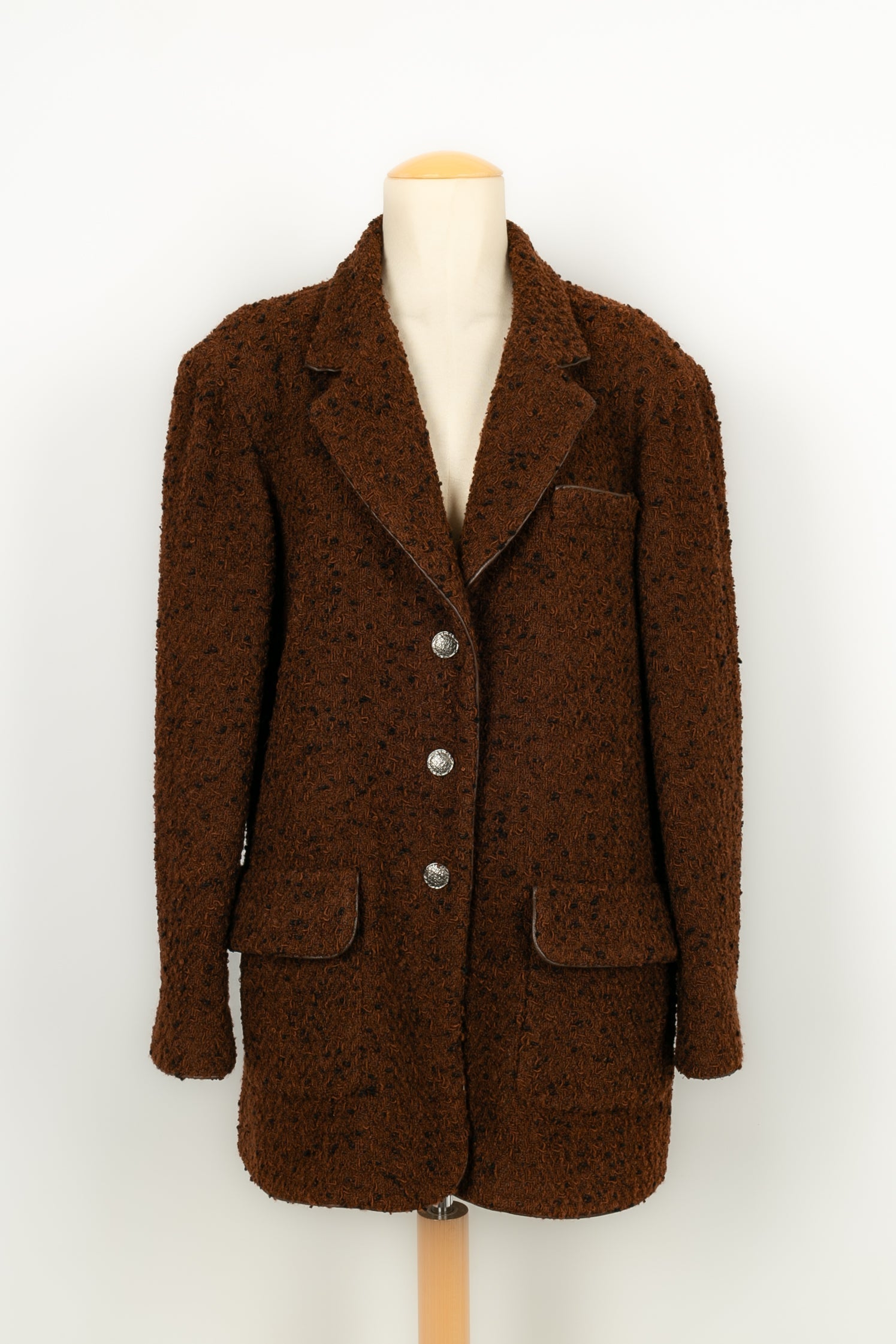 CHANEL - (Made in France) Veste en tweed de laine marron et doublure en soie. Collection Automne-Hiver 1997. Taille 44FR.
