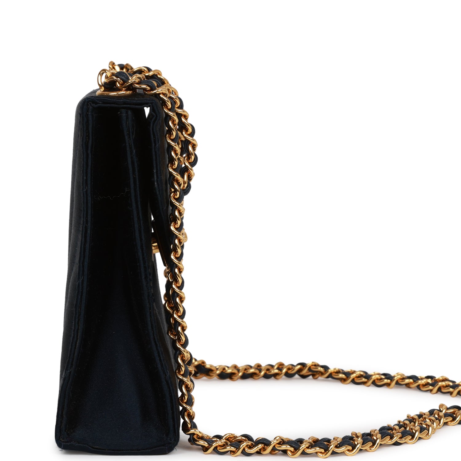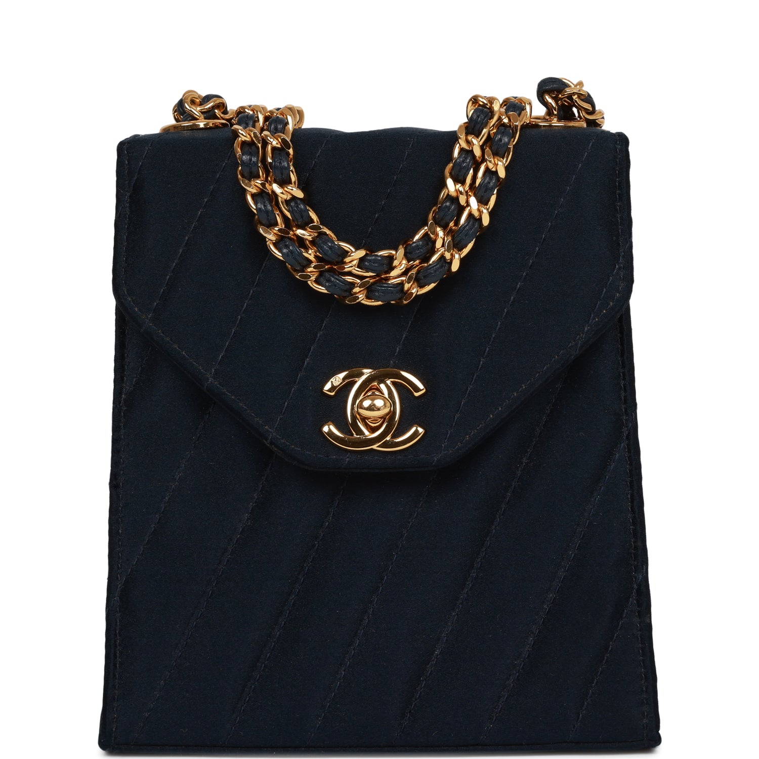 Vintage Chanel Mini Flap Bag Dark Blue Satin Gold Hardware