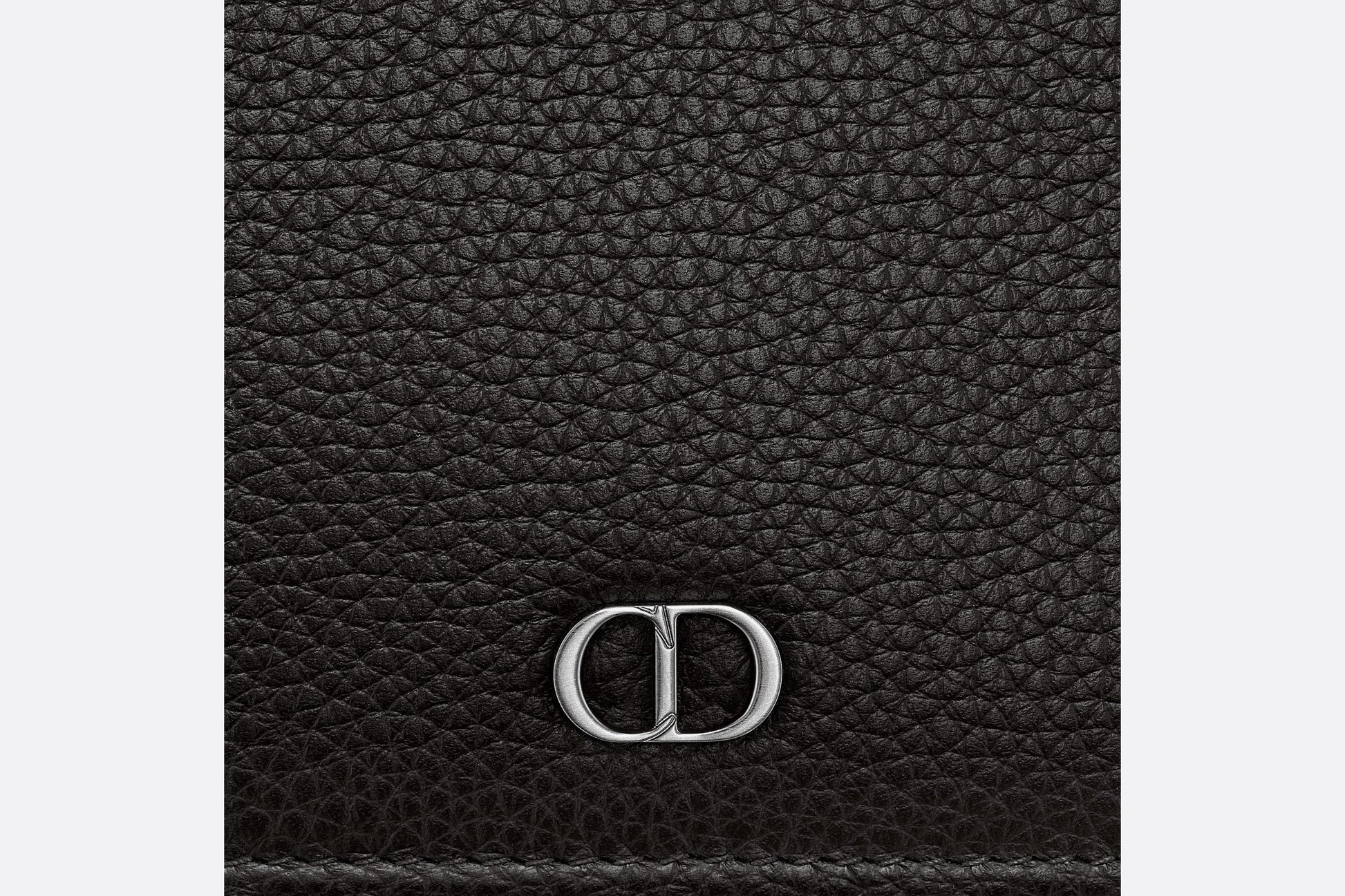 The wallet is a compact accessory with a refined look. Crafted in grained black calfskin, it showcases a ruthenium-finish brass 'CD Icon' signature on the front. The interior features a bill compartment, two flat compartments and eight card slots. The bi-fold wallet will slip into pockets and bags with ease.