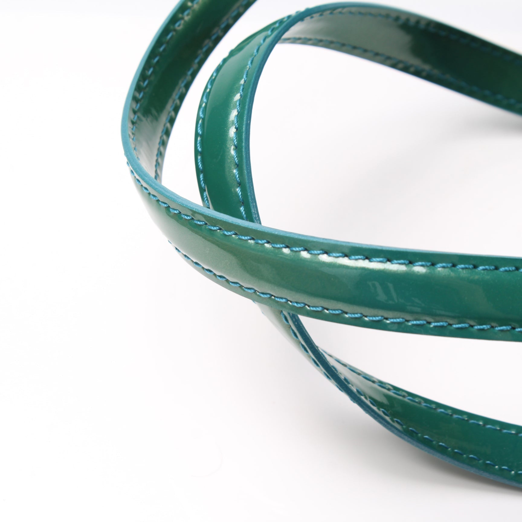 Exterior: The exterior patent leather is free of any rips or cracks. The corners have minor scuffs.