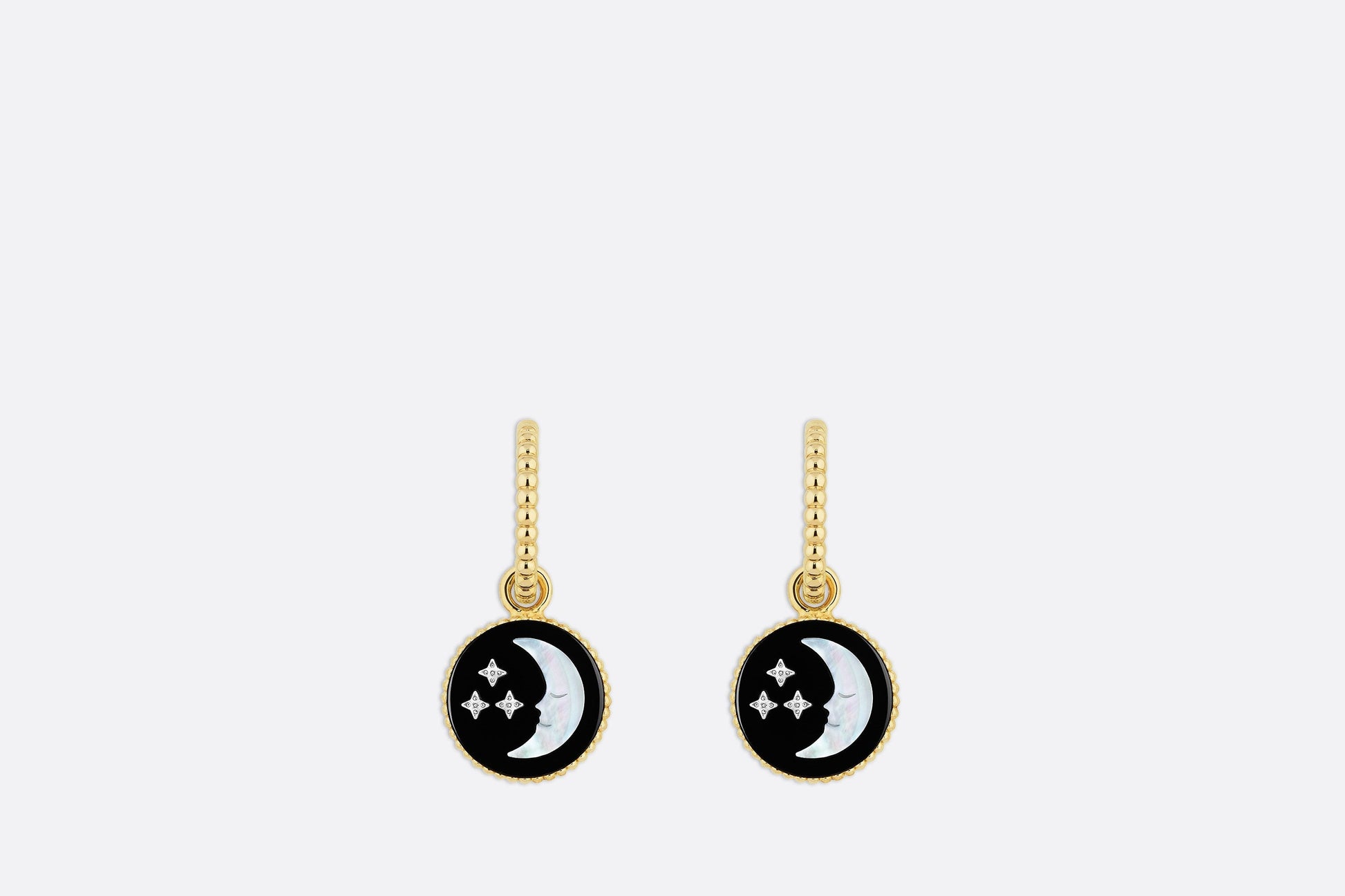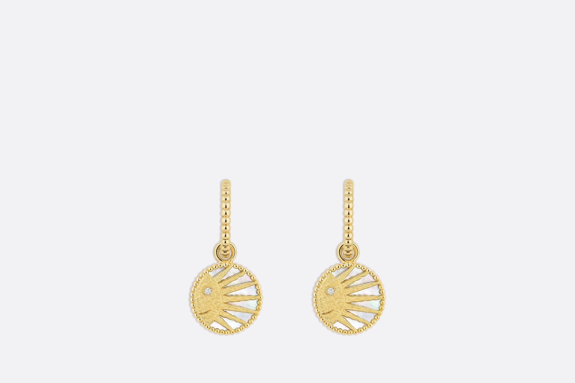 Victoire de Castellane continues the story of the Rose des Vents collection with a new celestial lucky charm. A twist of grains encircles the medallion, which turns to switch between the moon and sun side. The earrings can be switched between the moon and sun side or worn asymmetrically.