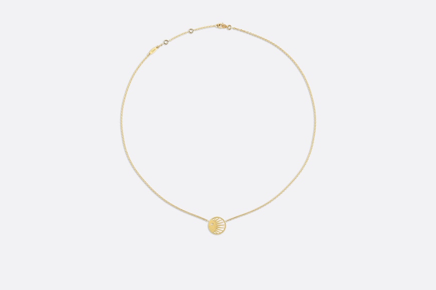 Victoire de Castellane continues the story of the Rose des vents collection with a new celestial lucky charm. A twist of grains encircles the medallion, which turns on its chain to switch between the moon and sun sides.