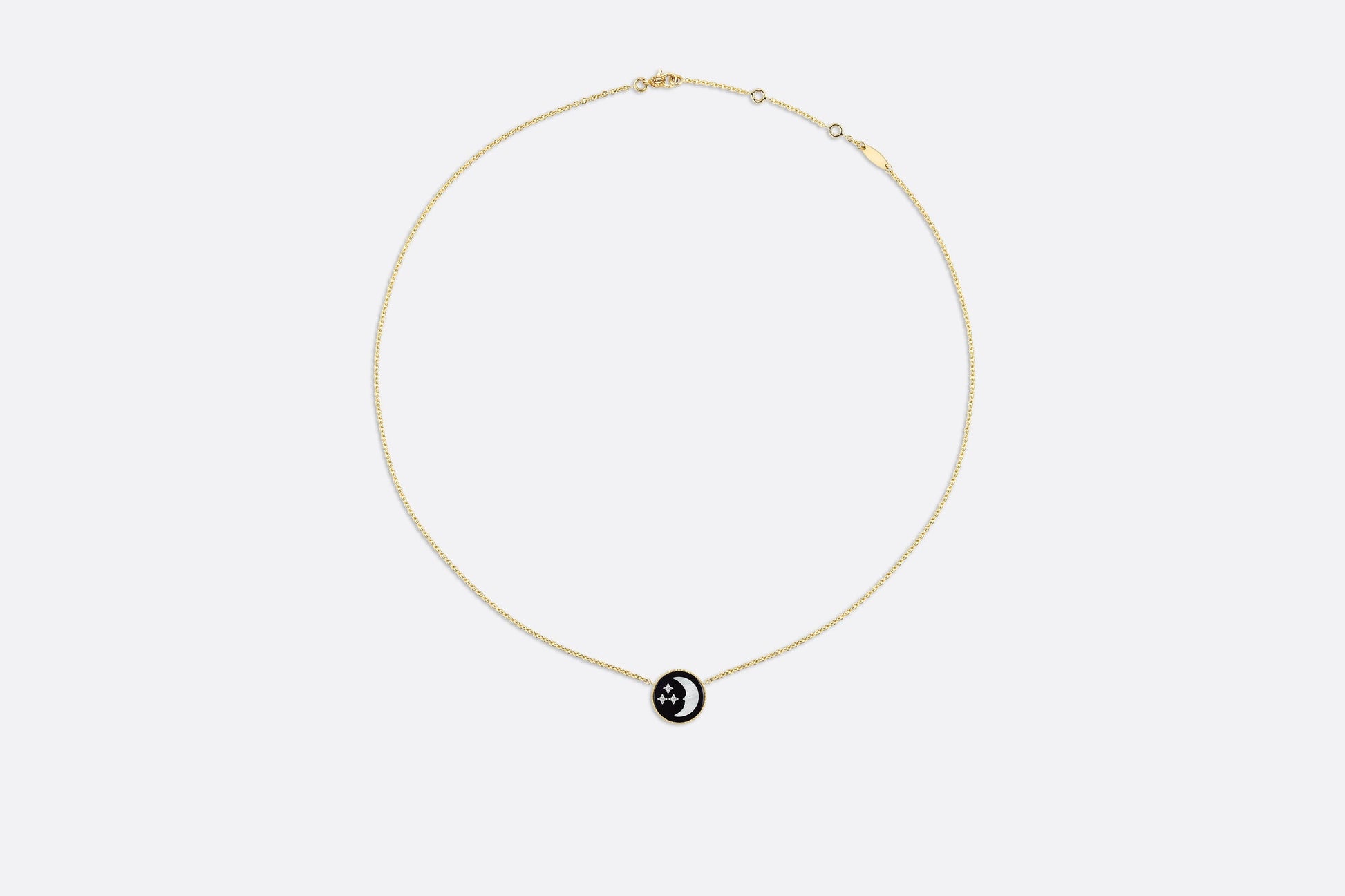 18K yellow and white gold Diamond (0.01 ct*) Mother-of-pearl Onyx 42 cm in length with small rings to adjust the chain to either 38 cm or 40 cm Motif diameter: 12 mm