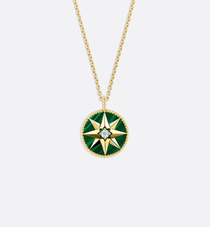 Rose des Vents Medallion Necklace • Yellow Gold, Diamond and Malachite