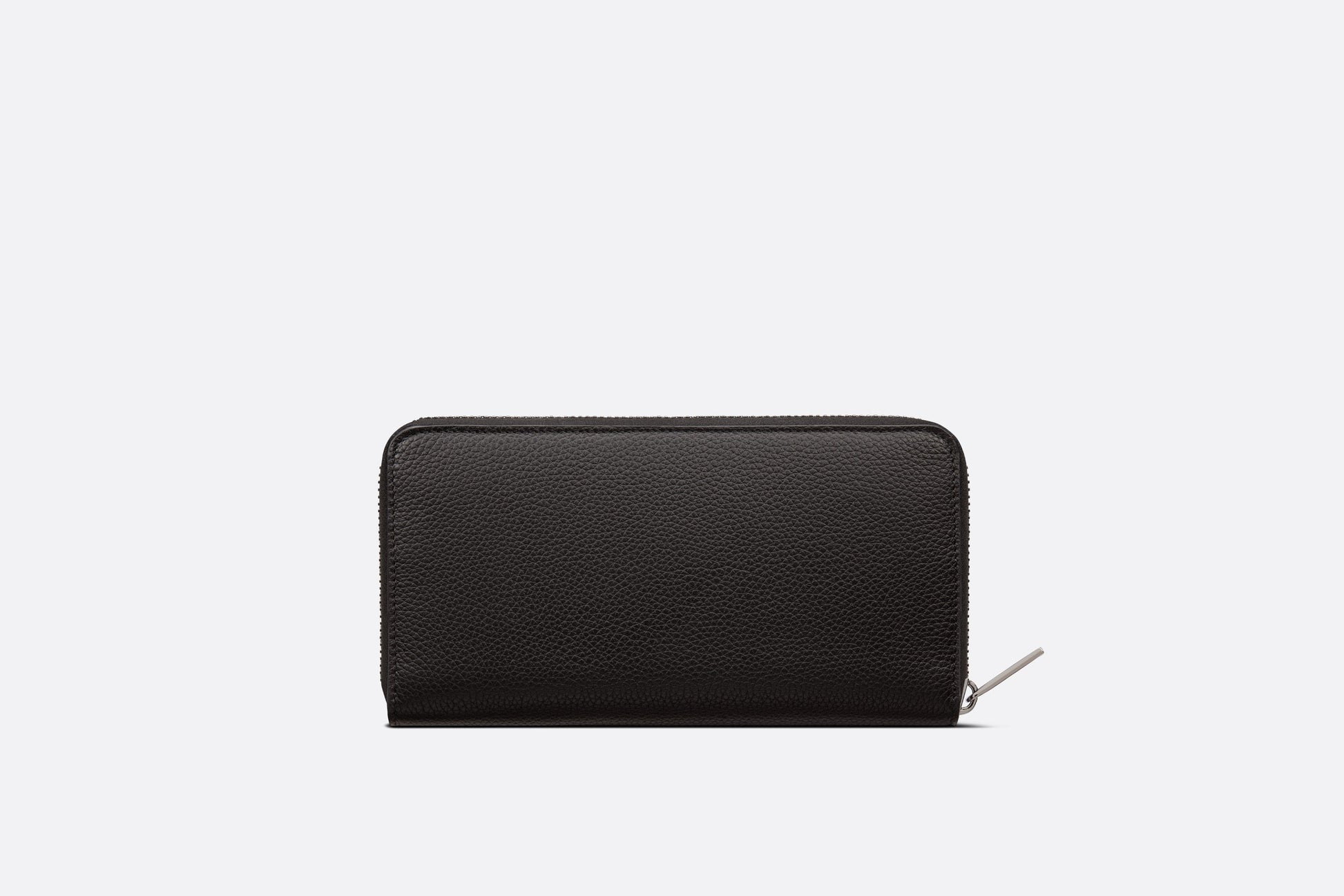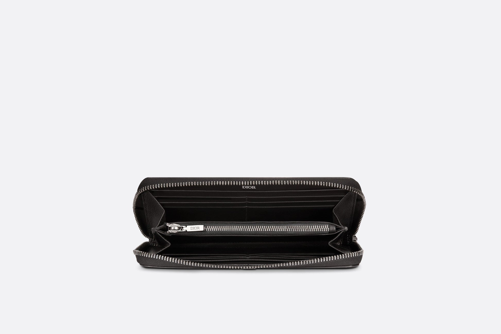 Zipped Long Wallet • Black Grained Calfskin with 'CD Icon' Signature