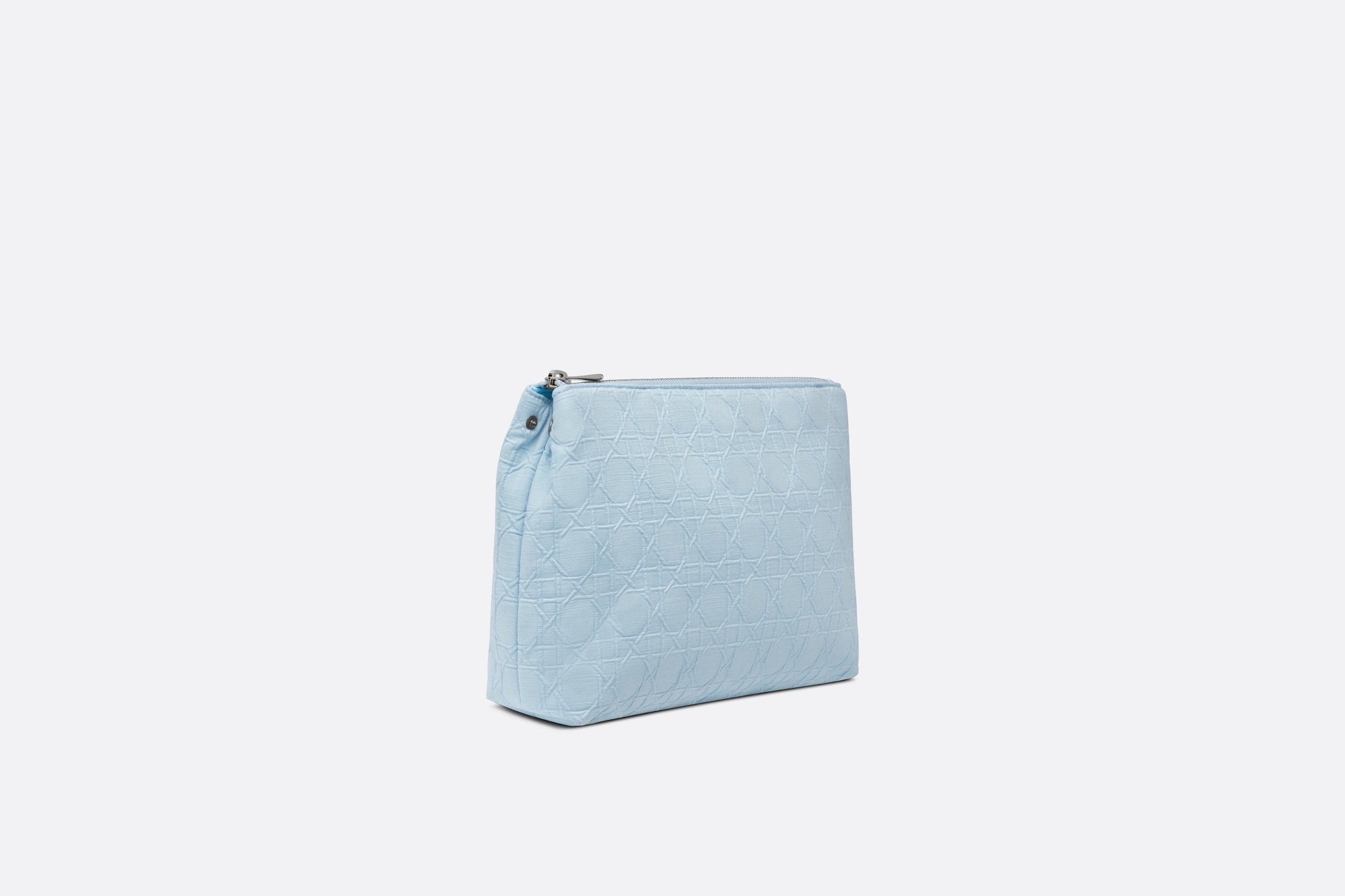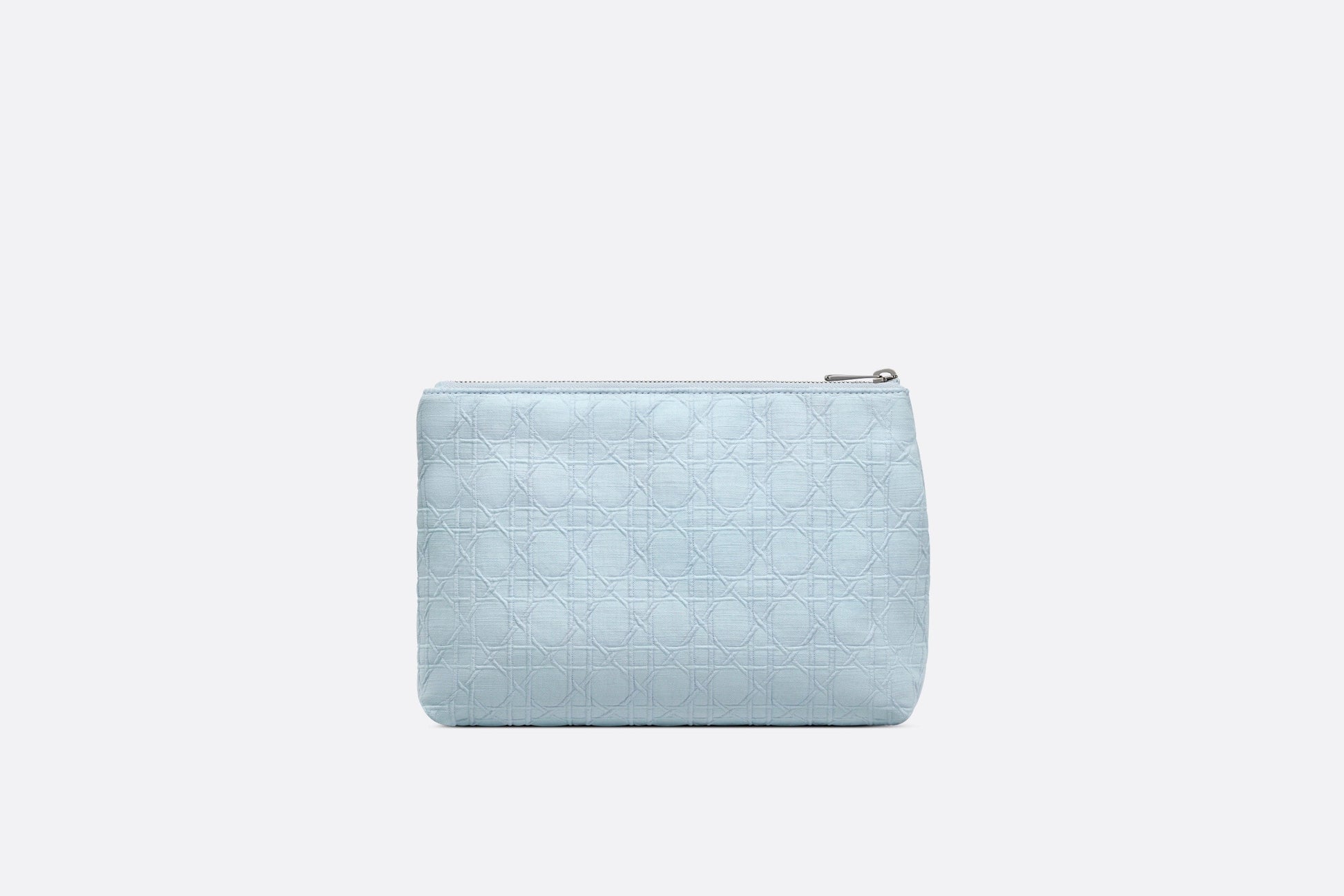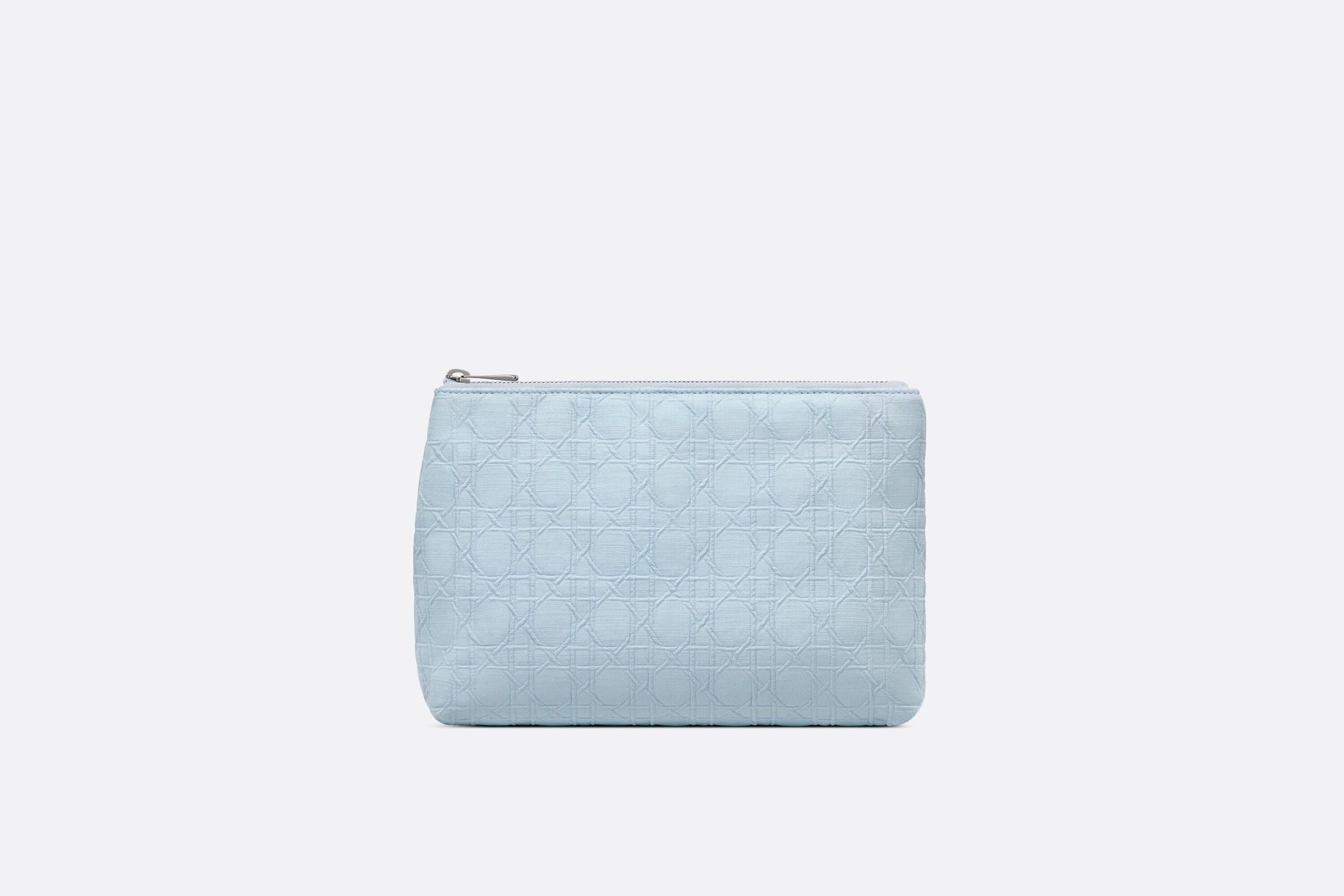New this season, the pouch honors the House's hallmark Cannage motif. Crafted in sky blue cotton canvas, it boasts a single compartment with a metal zip closure on top. The iconic pouch will be an ideal companion for organizing a baby's daily needs.